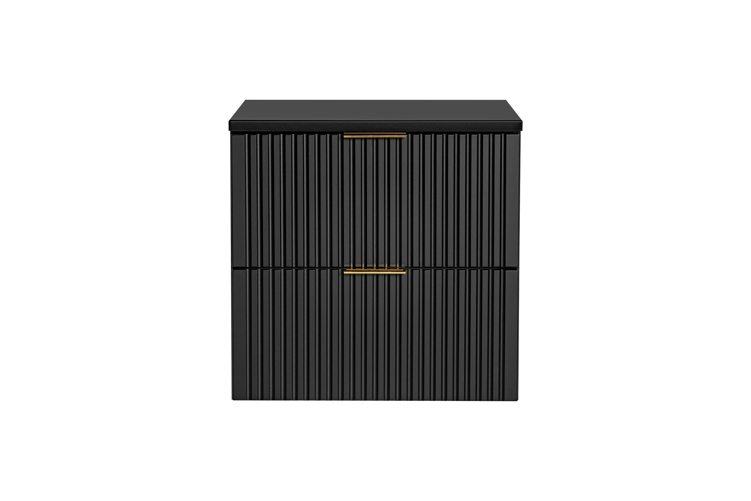 Odkryj elegancję szafki ADEL BLACK! Wykonana z trwałej płyty laminowanej, w modnym czarnym macie. Dwie pojemne szuflady z cichym domykaniem i stylowymi uchwytami w trzech kolorach. Idealna do nowoczesnych wnętrz – elegancka i praktyczna!
