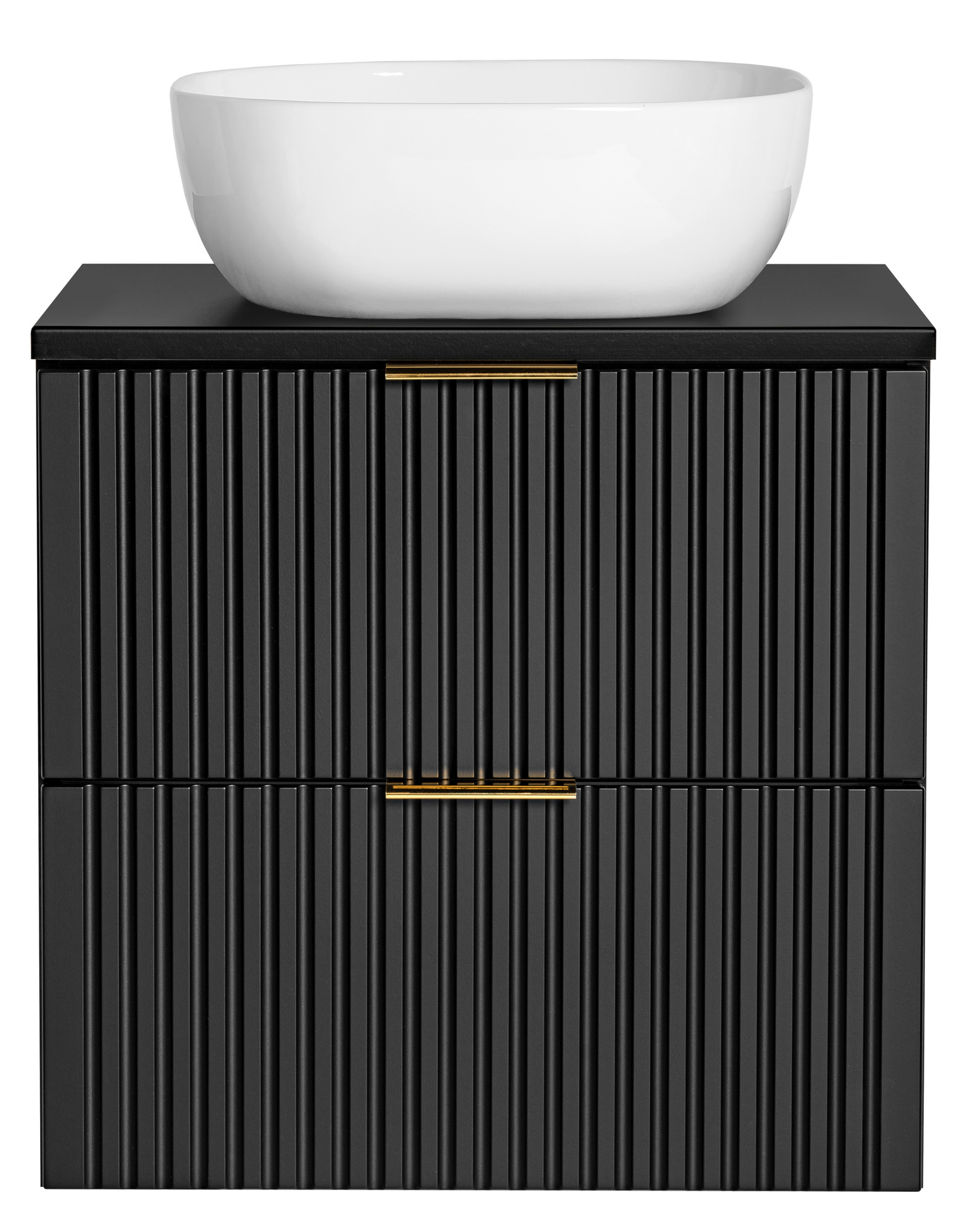 Szafka o szerokości 60 cm oferuje wystarczająco dużo miejsca na przechowywanie przyborów toaletowych, ręczników czy innych niezbędnych akcesoriów. Dzięki dwóm pojemnym szufladom z cichym domykiem, korzystanie z szafki będzie nie tylko wygodne, ale także bezgłośne. Eleganckie uchwyty dostępne w kolorze czarnym matowym, chromu połysku oraz złotego połysku pozwalają na dostosowanie wyglądu mebla do własnych preferencji.