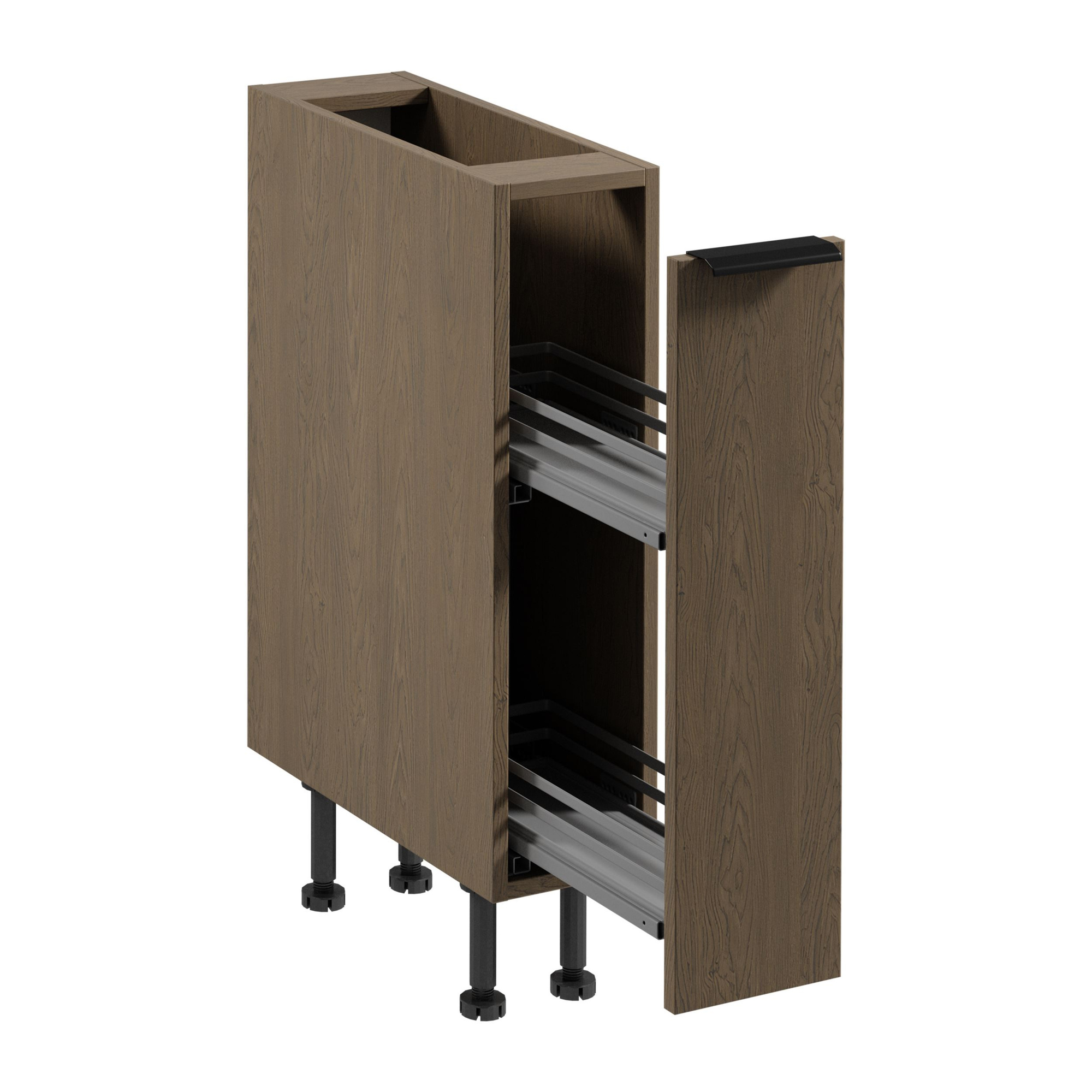 Ta funkcjonalna szafka o wymiarach 20 cm szerokości i 87 cm wysokości łączy w sobie estetykę z wysoką użytecznością. Oferując optymalną przestrzeń do przechowywania, rozwija możliwości organizacji Twojej kuchni. Wysokie nóżki o regulowanej wysokości sprawiają, że możesz dostosować mebel do swoich potrzeb, zapewniając dodatkowe miejsce na sprzątanie i wygodny dostęp.