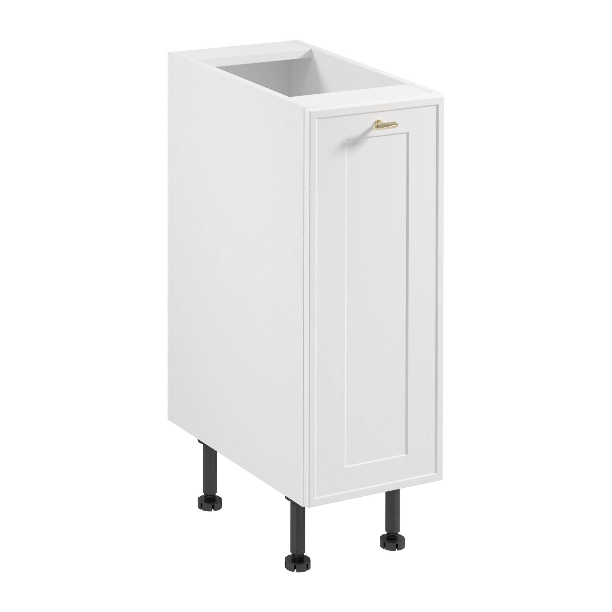 Szafka kuchenna Dolna Sorento 1D zauroczy białym matowym wykończeniem. Fronty MDF i laminowane korpusy. Złote metalowe uchwyty dodają elegancji, a zawiasy z cichym domykiem zapewniają komfort. Regulowane nóżki 15 cm ułatwiają montaż.