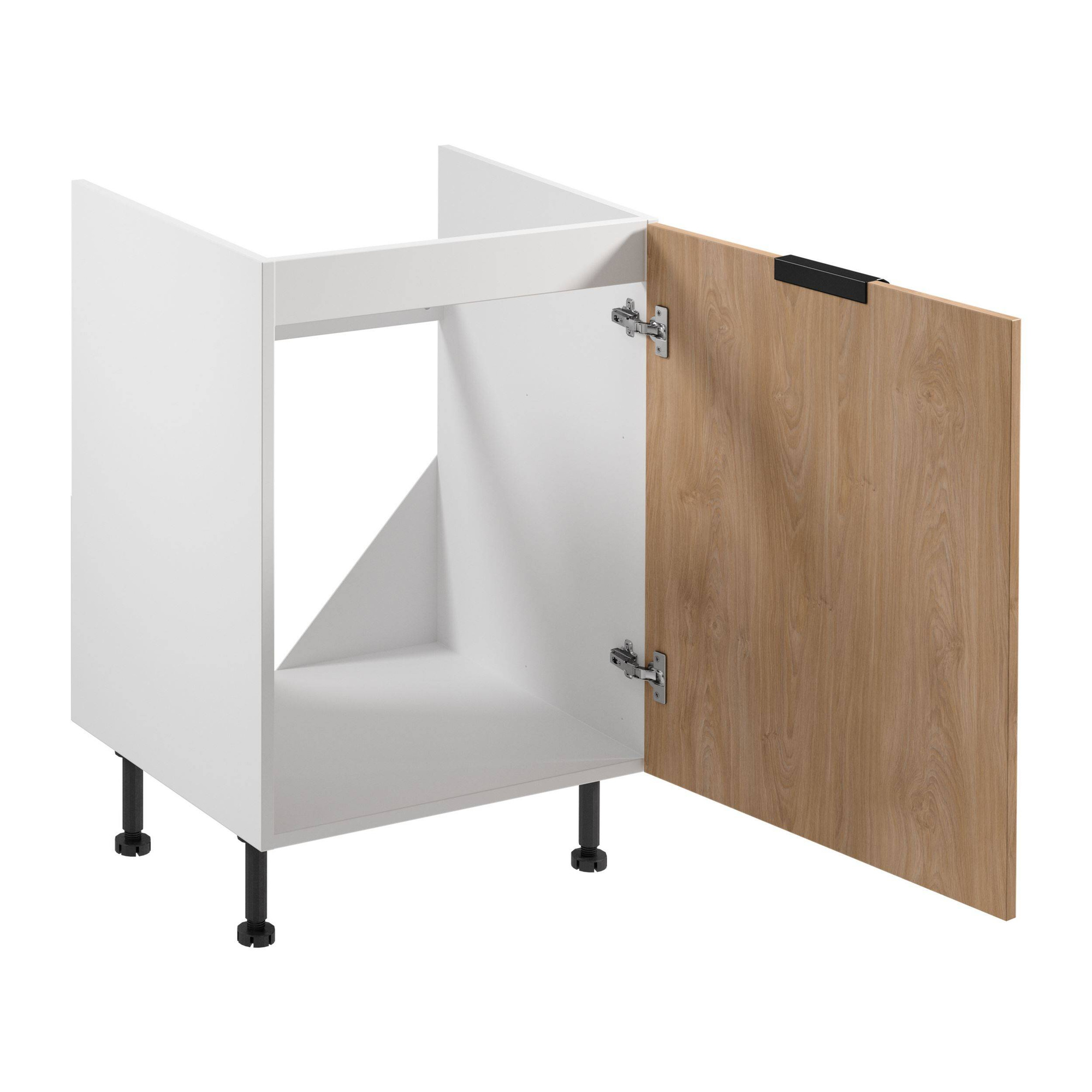 Szafka kuchenna Sorento D60Z w kolorze Puccini i białym matowym korpusie to eleganckie połączenie estetyki i funkcjonalności. Wyposażona w metalowy uchwyt i ciche zawiasy. Laminowane fronty, regulowane nóżki i prosty montaż czynią ją idealną do kuchni.