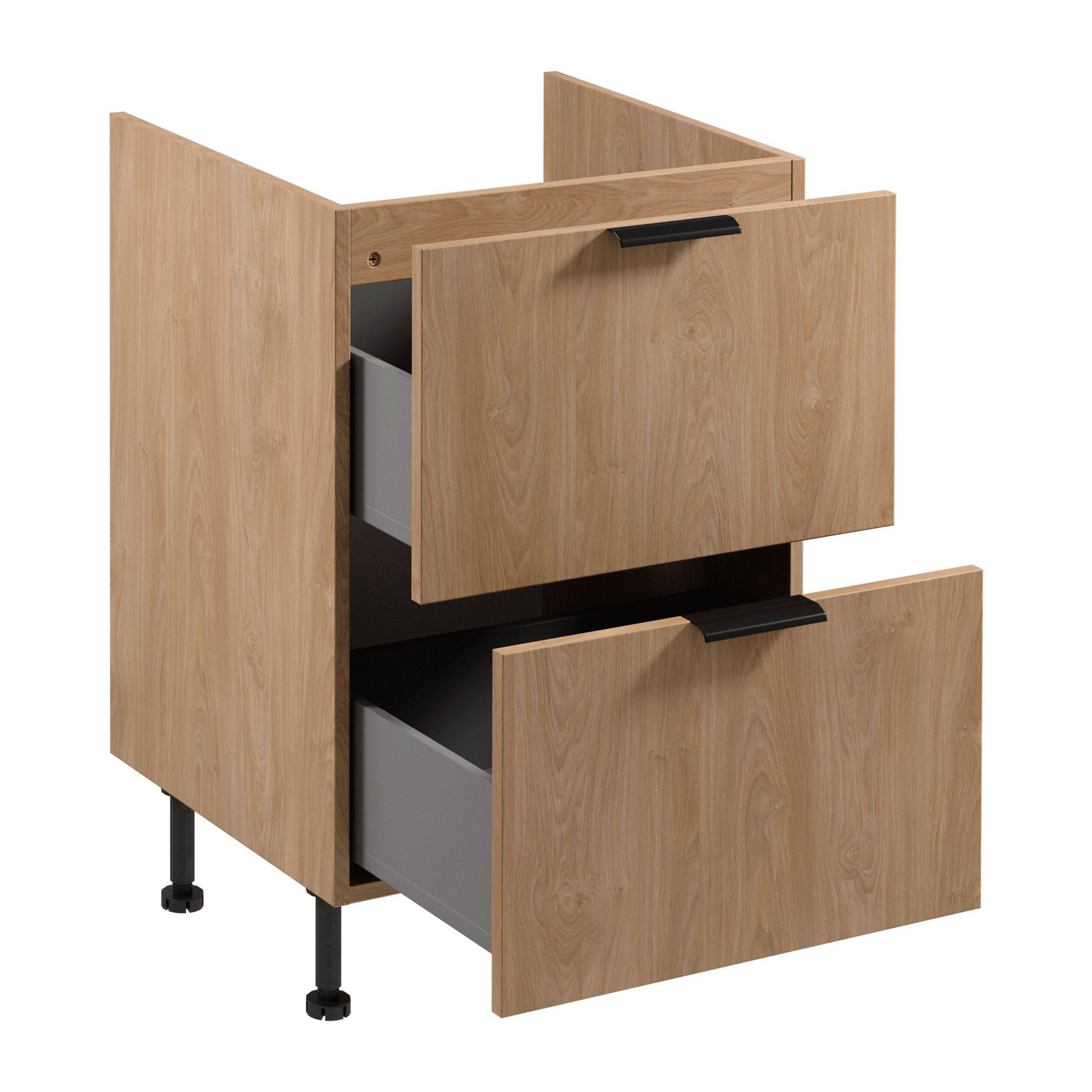 Szafka kuchenna Sorento charakteryzuje się doskonałą funkcjonalnością dzięki swoim praktycznym wymiarom. Pozwoli Ci efektywnie wykorzystać przestrzeń dzięki dwóm przestronnym szufladom, które ułatwiają organizację kuchennych akcesoriów. Rozwiązania zastosowane w tej szafce sprawiają, że będzie niezastąpionym elementem nowoczesnej kuchni, pomagając utrzymać harmonię i porządek.
