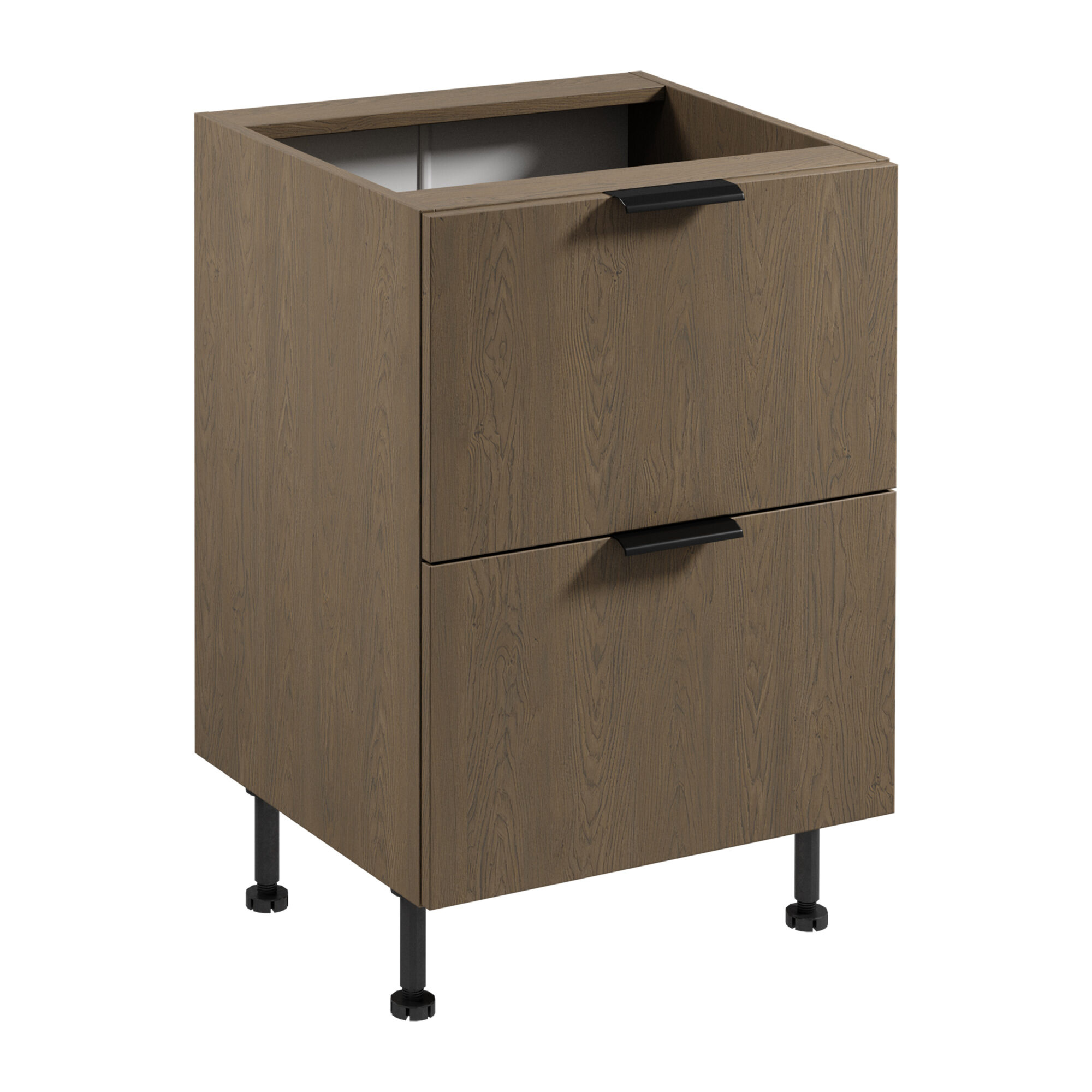 Szafka o szerokości 60 cm, wysokości 87 cm i głębokości 52 cm jest zaprojektowana z myślą o maksymalnej użyteczności. Wyposażona w dwie praktyczne szuflady, oferuje sporo miejsca na przechowywanie akcesoriów kuchennych. Wysokie nóżki o regulowanej wysokości do 15 cm nie tylko dodają jej lekkości, ale również ułatwiają sprzątanie, co sprawia, że codzienne korzystanie z kuchni staje się jeszcze bardziej komfortowe.