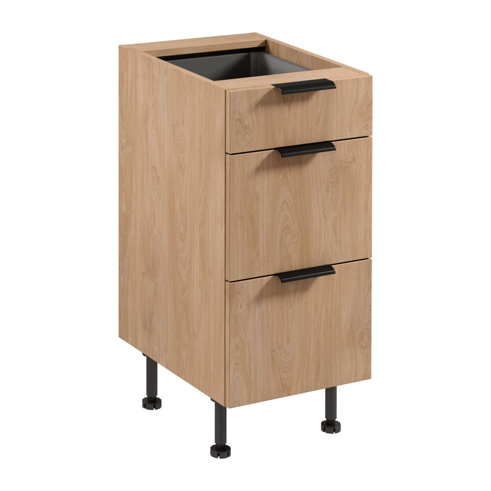Szafka dolna Sorento D40S3 w kolorze Puccini to eleganckie i funkcjonalne rozwiązanie do Twojej kuchni. Posiada 3 szuflady z pełnym wysuwem i cichym domykiem, metalowe czarne uchwyty oraz regulowane wysokie nóżki. Doskonała jakość i styl.
