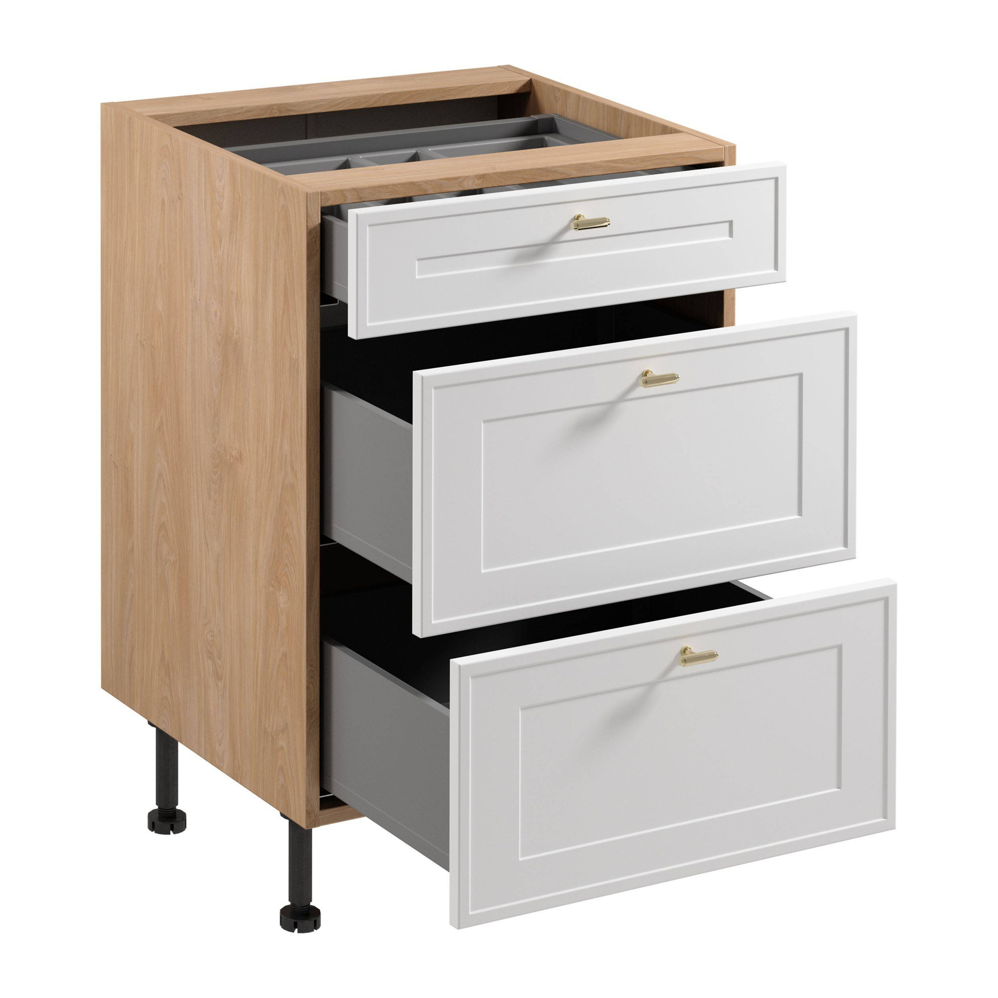 Szafka Kuchenna Dolna 3S z Wkładem Na Sztućce Sorento D60S3 AX Puccini Biały Mat Ramka