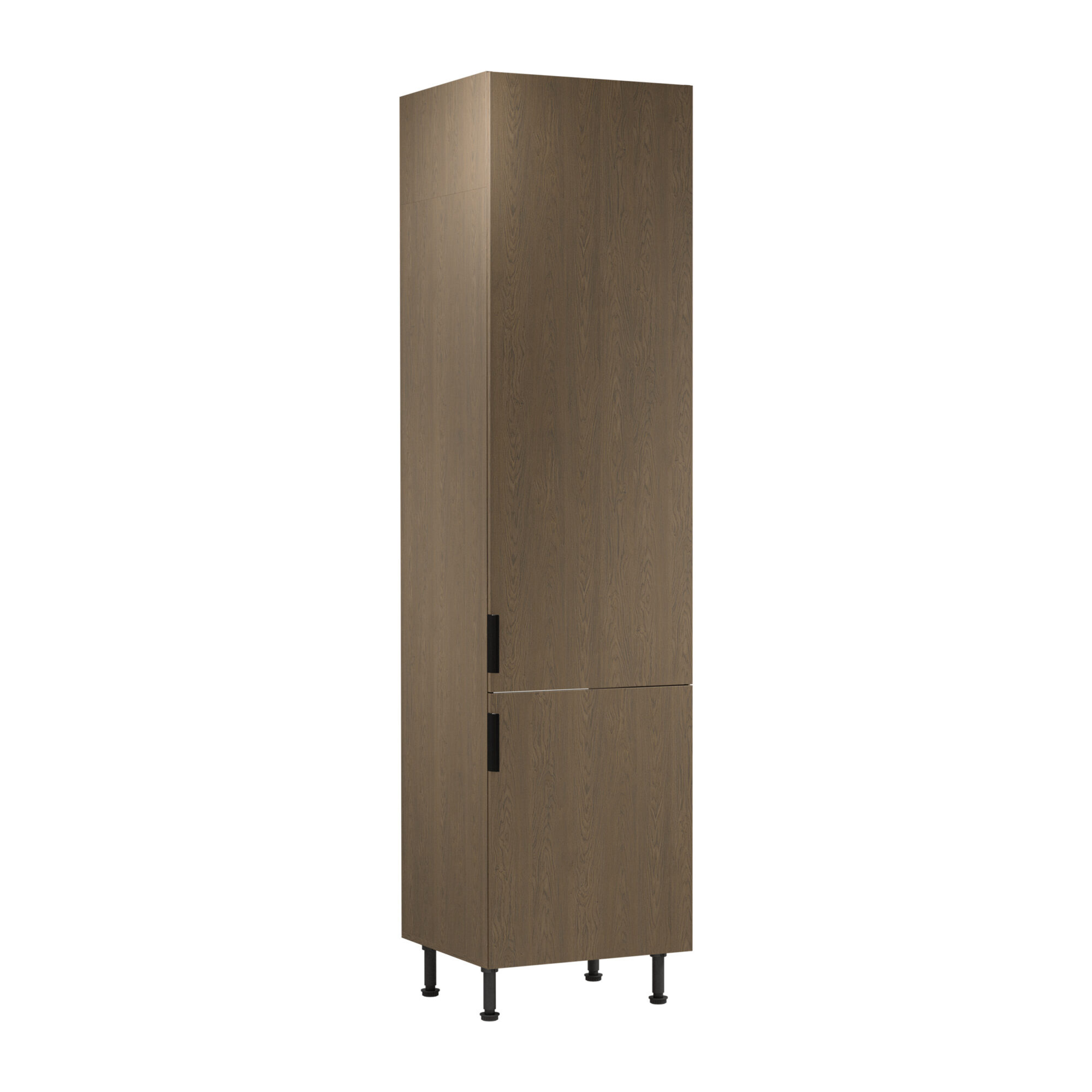 Ta szafka charakteryzuje się solidną konstrukcją stworzoną z płyty laminowanej, odporną na codzienne uszkodzenia, co sprawia, że jest idealna na lata użytkowania. Wysokość 247 cm pozwala na optymalne zagospodarowanie przestrzeni, a głębokość 58 cm zapewnia wystarczająco dużo miejsca na sprytne przechowywanie. Dzięki doskonale przemyślanej, regulowanej wysokości nóżek, możesz idealnie dostosować szafkę do swoich potrzeb, co czyni ją jeszcze bardziej uniwersalną.