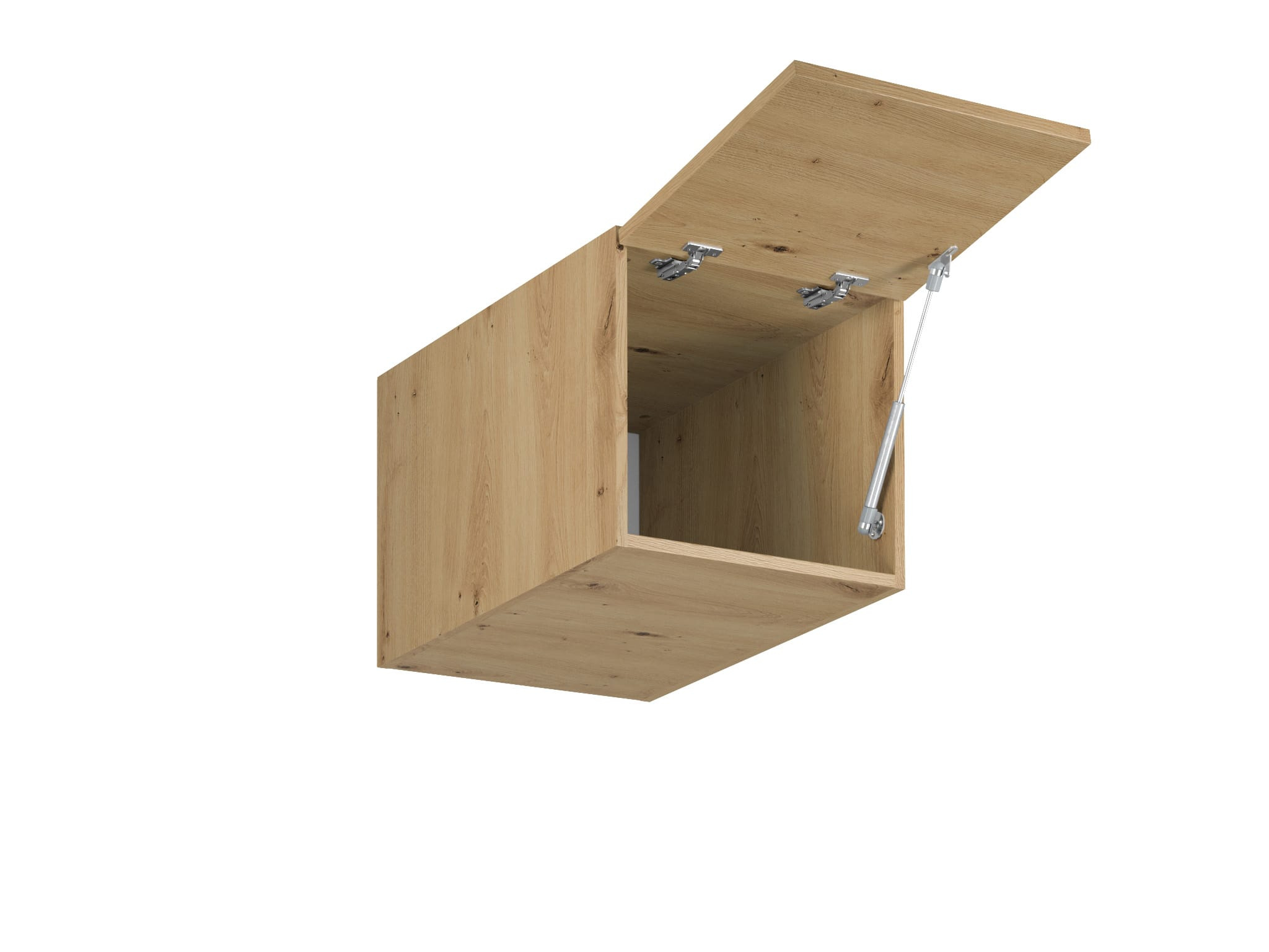 Szafka górna Langen Artisan N40 z płyty laminowanej w kolorze dębu Artisan. Wytrzymała na uszkodzenia, z czarnym metalowym uchwytem lub bezuchwytowa. Idealna do nowoczesnych kuchni, do samodzielnego montażu.