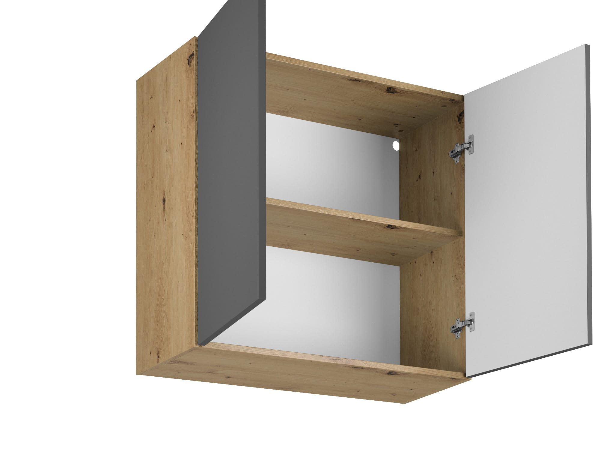 Dzięki matowemu wykończeniu frontu w subtelnym kolorze grey, szafka G80 wniesie do Twojego wnętrza odrobinę elegancji i spokoju. Ten kolor świetnie współgra zarówno z nowoczesnymi, jak i klasycznymi kuchniami, dodając im wyjątkowego charakteru. Z kolei korpus w kolorze dębu artisan wprowadza ciepło i naturalność, czyniąc z tej szafki idealny wybór dla osób ceniących sobie komfort i estetykę.