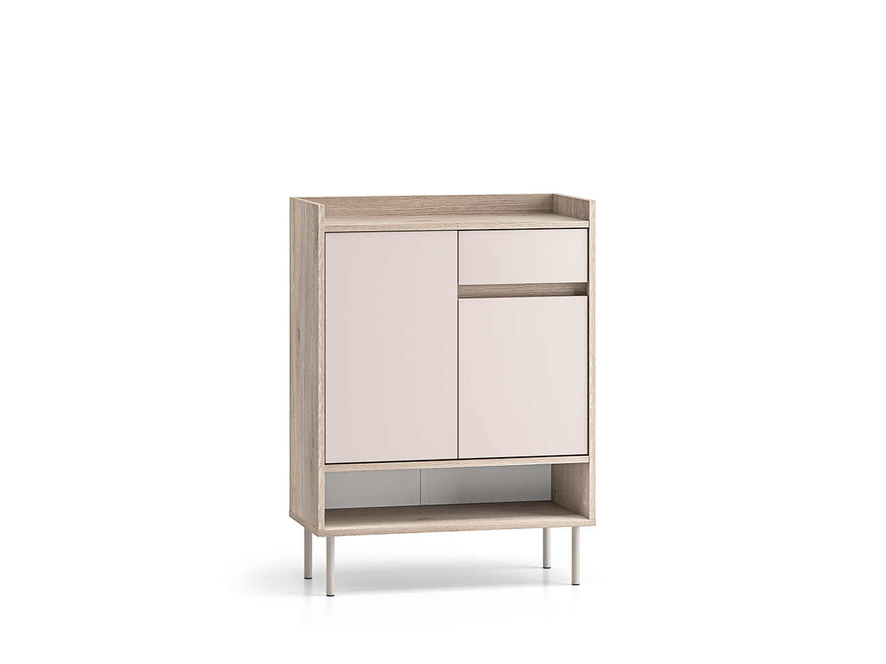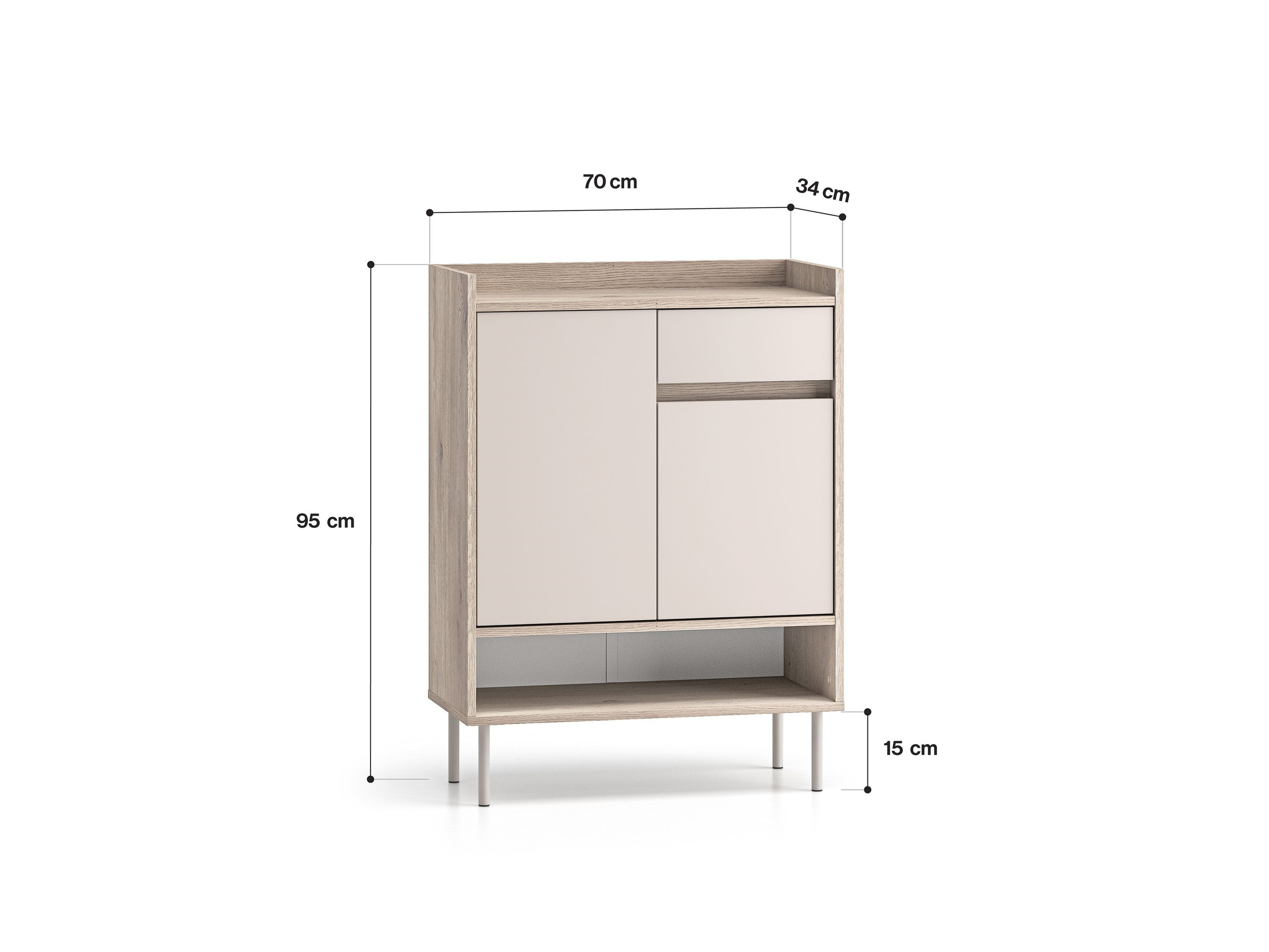 Wysoka jakość materiałów, z których została wykonana, to kluczowa cecha tej szafki. Laminowana płyta korpusu oferuje odporność na zarysowania i łatwość w utrzymaniu czystości, a metalowe nogi zapewniają stabilność i trwałość. Bez względu na to, czy wybierzesz ją do małego mieszkania, czy większego domu, szafka VOCO 03 doskonale wkomponuje się w każde otoczenie.