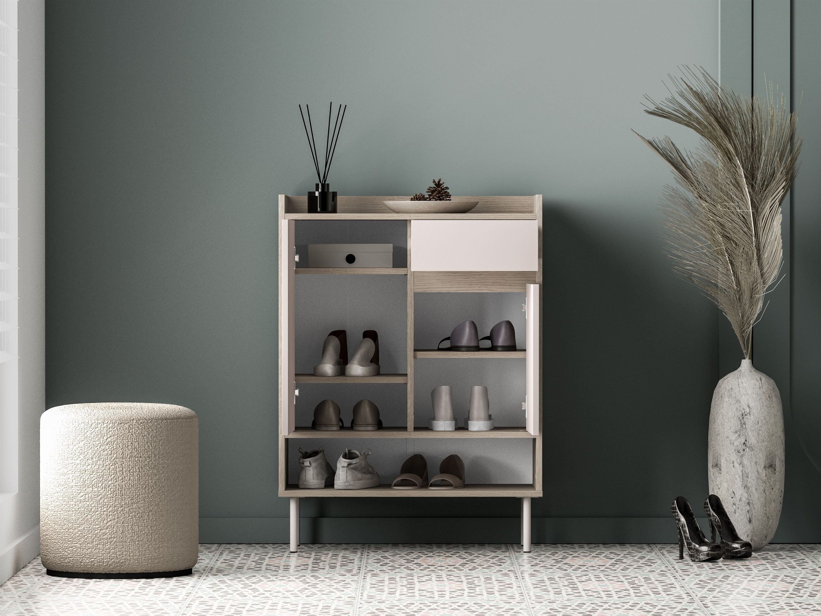 Zaprojektowana z myślą o codziennym użytkowaniu, szafka VOCO 03 gwarantuje wygodę i łatwość dostępu do Twojego obuwia. Dzięki pełnemu wysuwowi prowadnic, każda para butów znajdzie swoje miejsce w zasięgu ręki. Cichy domyk zawiasów zapewnia komfort, eliminując nieprzyjemny hałas, co sprawia, że użytkowanie tej szafki jest czystą przyjemnością.