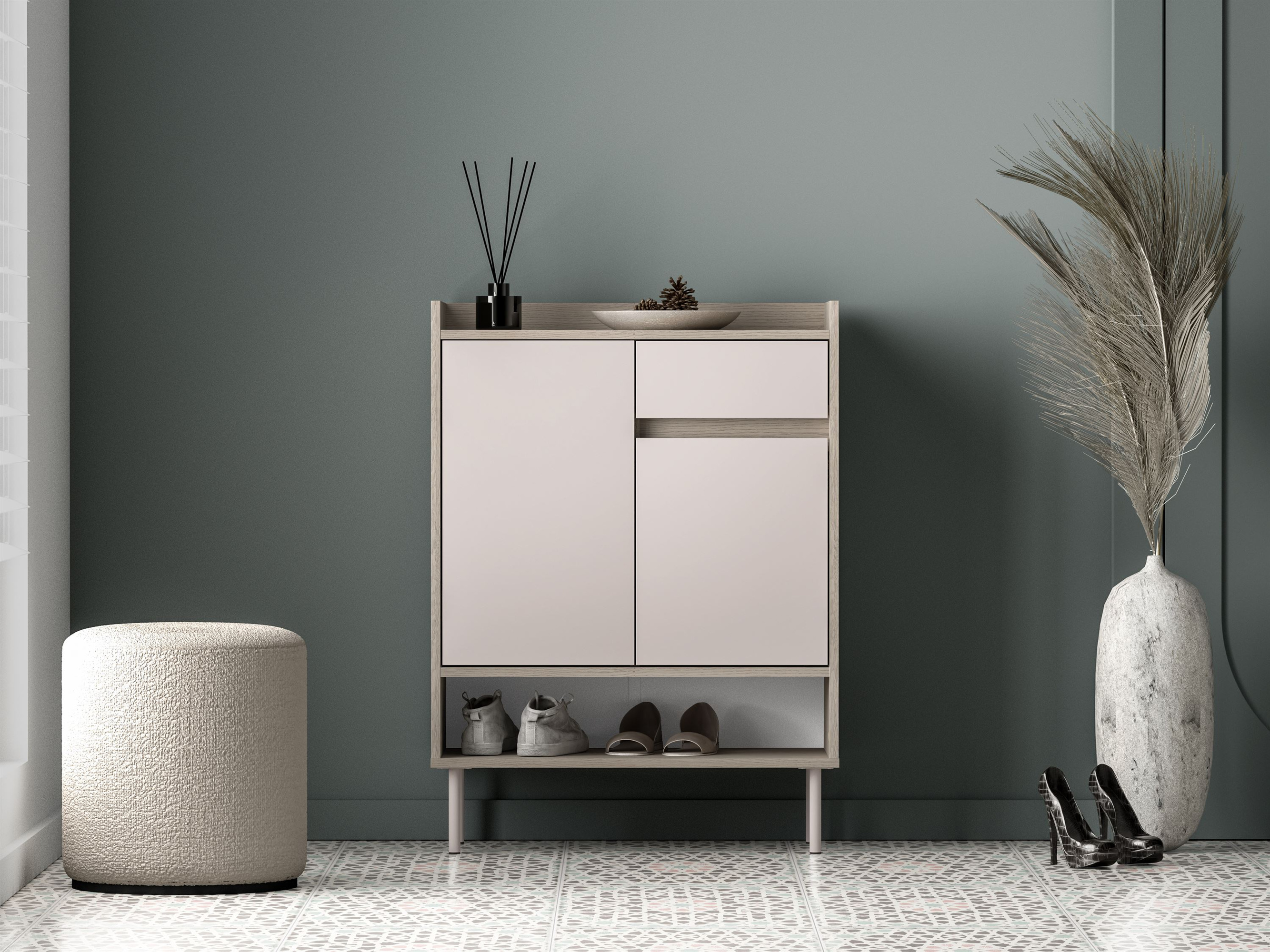 Elegancka szafka na buty VOCO 03 to idealne połączenie stylu i funkcjonalności. Wykonana z trwałej płyty laminowanej w odcieniach Dąb Cremona i Cashmere, z metalowymi nogami. Pełny wysuw szuflad i cichy domyk zawiasów zapewniają wygodę użytkowania.
