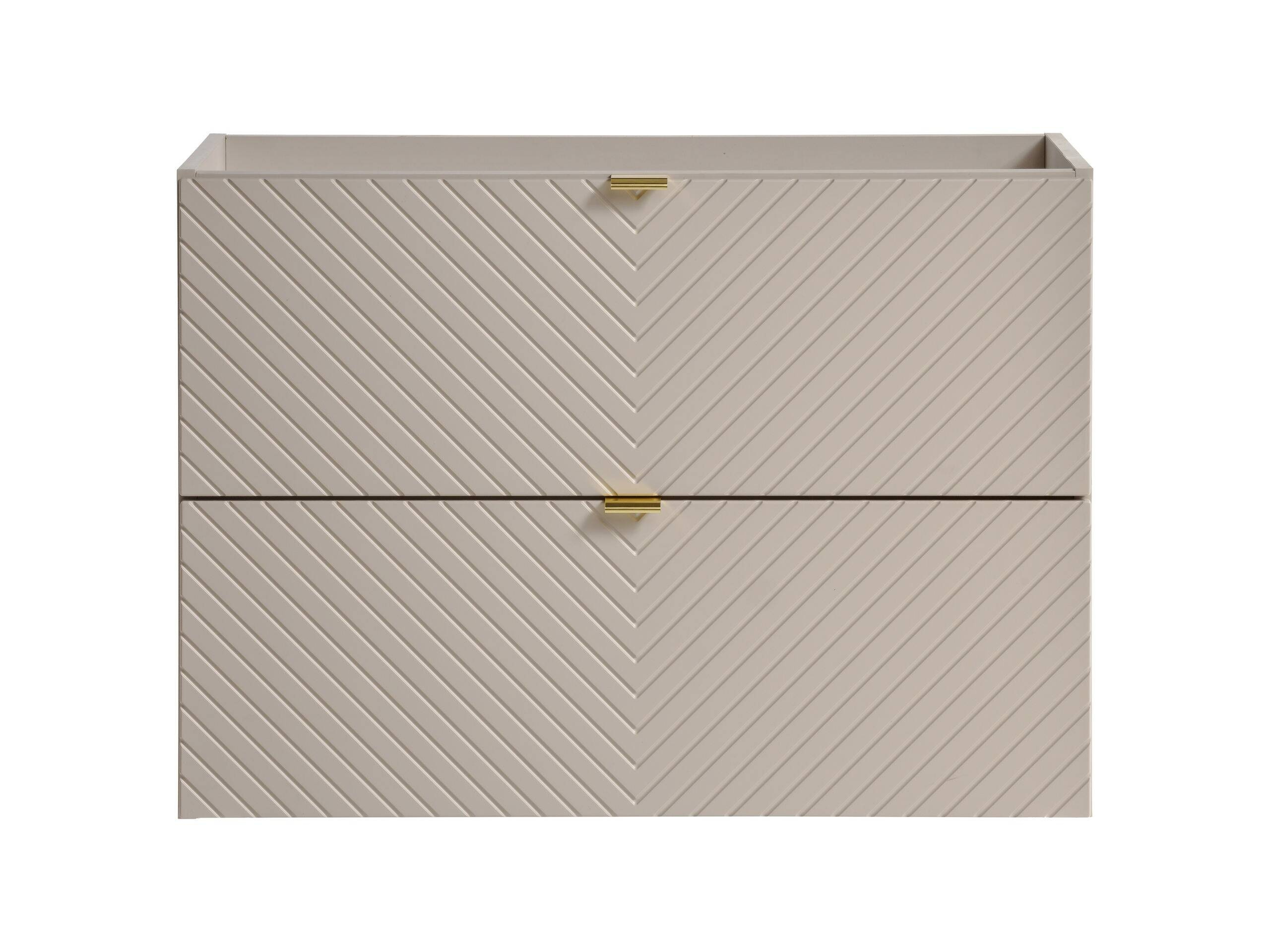 Szafka Pod Umywalkę 2 Szuflady 80 cm Viva Cashmere to elegancka propozycja dla osób, które pragną wprowadzić do swojej łazienki stylowy i wyrafinowany design. Zastosowanie kaszmirowego matowego koloru sprawia, że mebel doskonale komponuje się z różnorodnymi aranżacjami, dodając im nie tylko klasy, ale i subtelnego ciepła. Głębia kolorów i trójwymiarowe, frezowane fronty w kształcie jodełki tworzą niepowtarzalny akcent, który przyciąga wzrok i wprowadza harmonię do wnętrza.