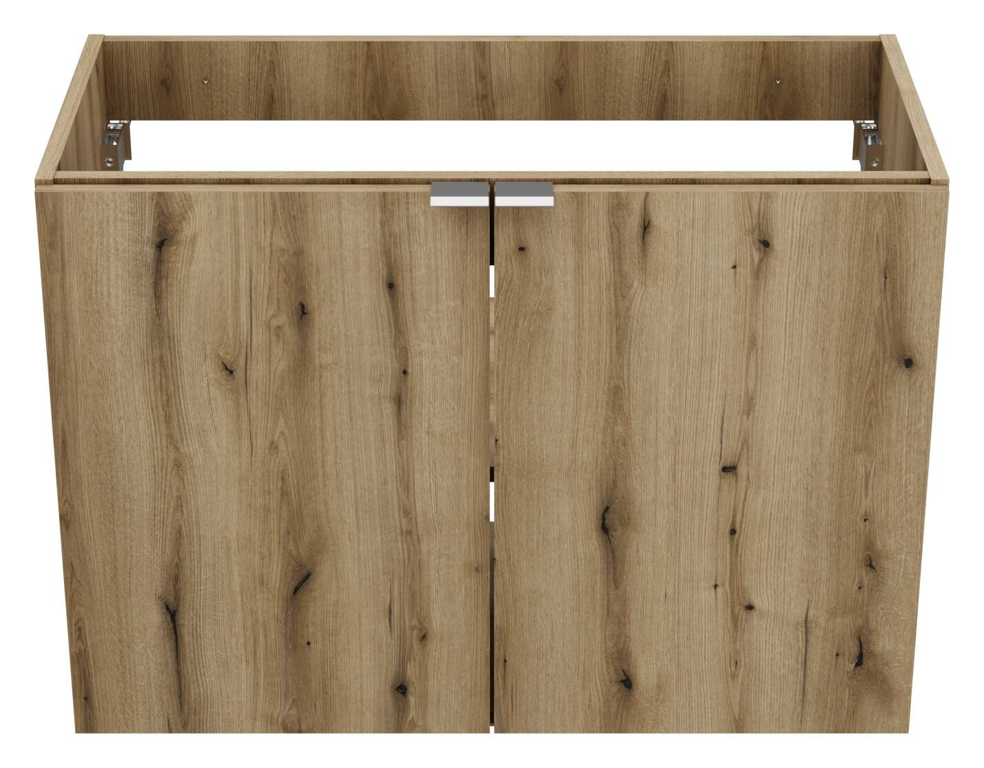 - Szafka pod umywalkę Nova Oak, 80x39x57 cm, płyta laminowana Dąb Cost Evoke. Cichy domyk, chromowane uchwyty, 1 stała i 1 regulowana półka.
