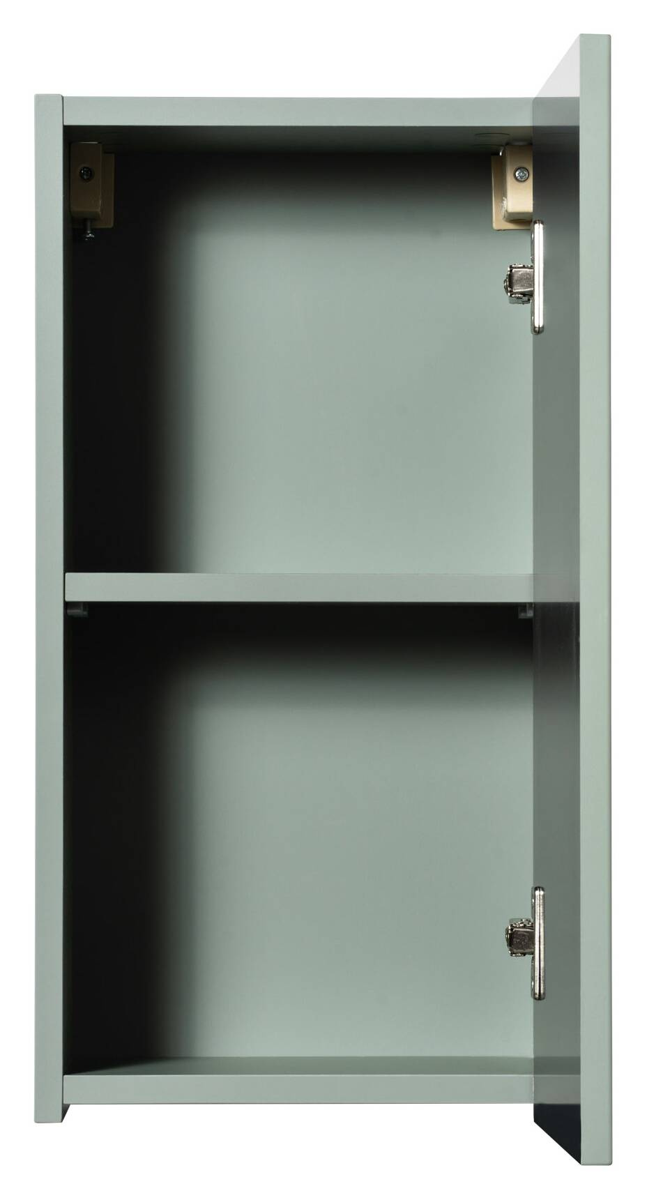 Szafka Wisząca LINE REED GREEN marki Comad o szerokości 30 cm i wysokości 57 cm, wykonana z płyty laminowanej i MDF, w kolorze Reed Green. Wyposażona w jedne drzwi z cichym domykaniem, zintegrowany uchwyt oraz dwie półki (stała i regulowana).