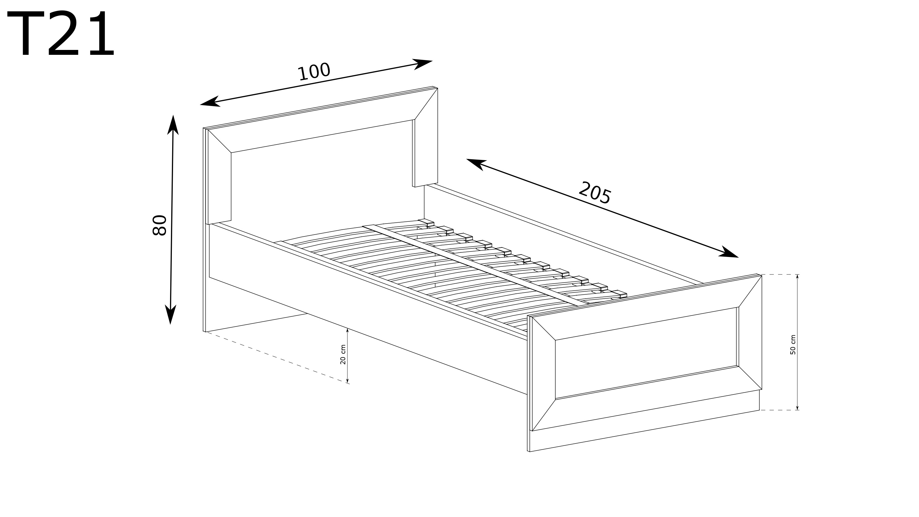 Łóżko TADEUSZ-21 to idealne rozwiązanie do pokoju młodzieżowego lub gościnnego. Wykonane z laminowanej płyty w kolorze Dąb Stuletni, gwarantuje trwałość i elegancję. Szerokość materaca 90x200 cm zapewnia komfortowy sen. Proste w montażu!
