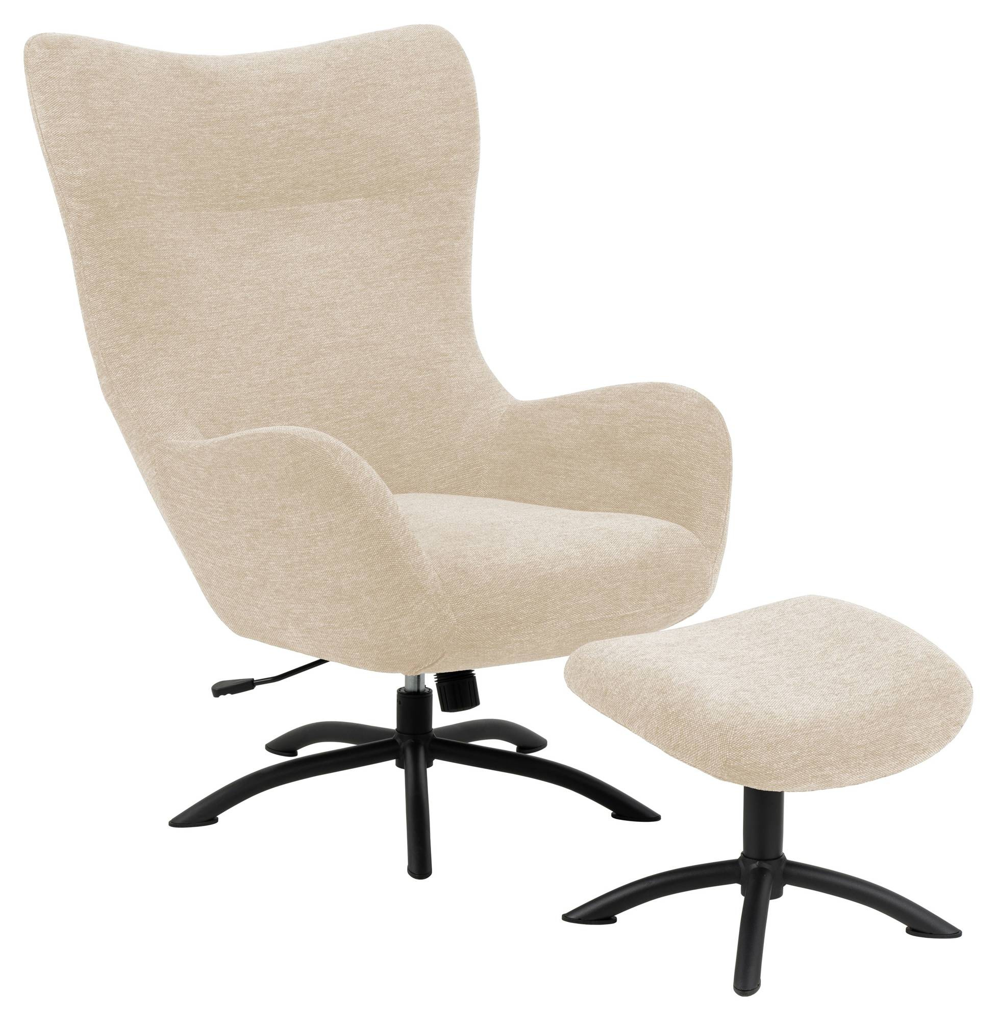 - Talgarth Leżanka z podnóżkiem, Skyland tkanina kremowa 1, Podstawa metalowa matowa czarna szorstka malowana proszkowo, Z ręcznym odchylaniem i obrotem