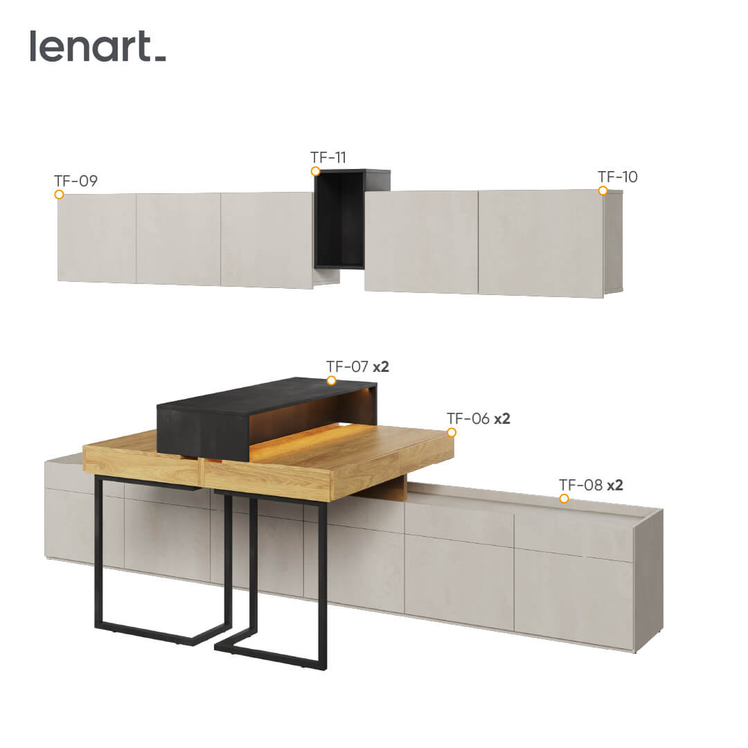 Zestaw TEEN FLEX SET-04B o szerokości 300 cm, wysokości 193 cm i głębokości 110 cm, waży łącznie 199,5 kg i wymaga samodzielnego montażu. Jego nowoczesny design to połączenie minimalizmu z funkcjonalnością, uzupełnione o 22 półki, 4 szuflady na prowadnicach kulkowych i aż 11 drzwi z puszkowymi zawiasami oraz nowoczesnymi uchwytami i nóżkami metalowymi. Dopełnieniem jest oświetlenie LED o klasie energetycznej A++, które wniesie do pokoju przytulną atmosferę.