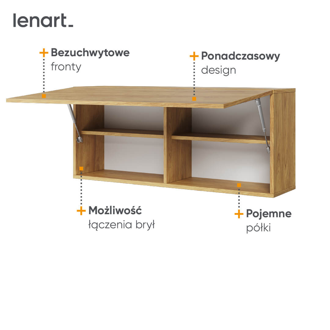 - Minimalistyczna szafka wisząca TEEN FLEX TF-12 z bezuchwytowymi frontami to idealne rozwiązanie na przechowywanie w pokoju młodzieżowym. Nowoczesny design hikory naturalnej usprawnia organizację przestrzeni.