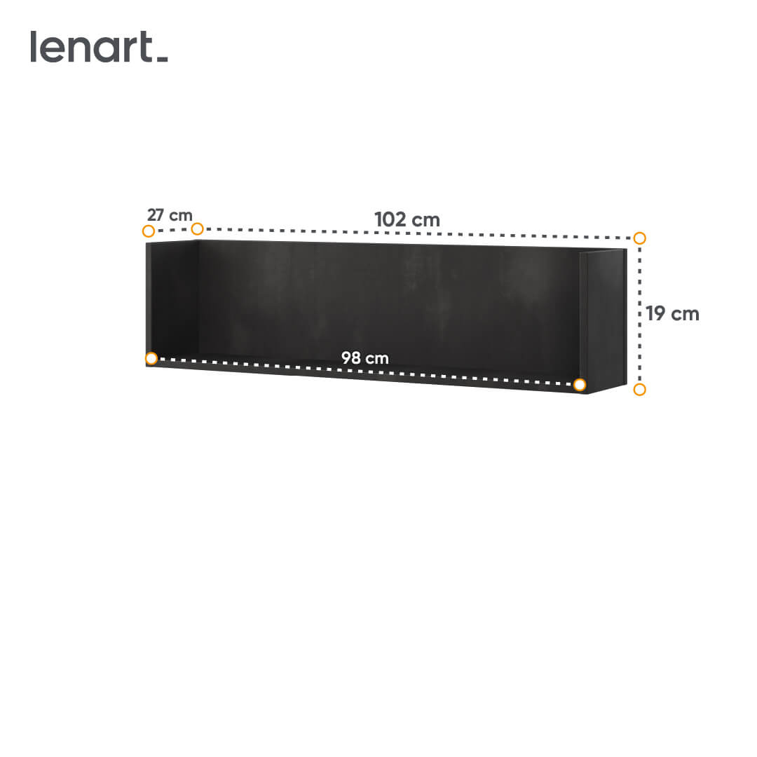 Półka o szerokości aż 102 cm i głębokości 27 cm, z tytułem SEO "szafa w sypialni" i "półka do pokoju młodzieżowego", stanowi doskonałe miejsce do prezentacji trofeów, gadżetów czy ulubionych książek. Korpus wykonany z 16-mm płyty wiórowej laminowanej oraz wykończenie krawędzi korpusu o grubości 0,45mm gwarantują stabilność i odporność na uszkodzenia. Kolor "surowa stal" nie tylko jest trwały, ale też łatwy w utrzymaniu czystości.