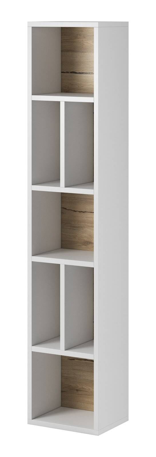- Regał wiszący Toledo w eleganckim połączeniu białego połysku i San Remo, wyposażony w 4 półki. Odporny na zarysowania i wilgoć, doskonale komponuje się z nowoczesnym wnętrzem.