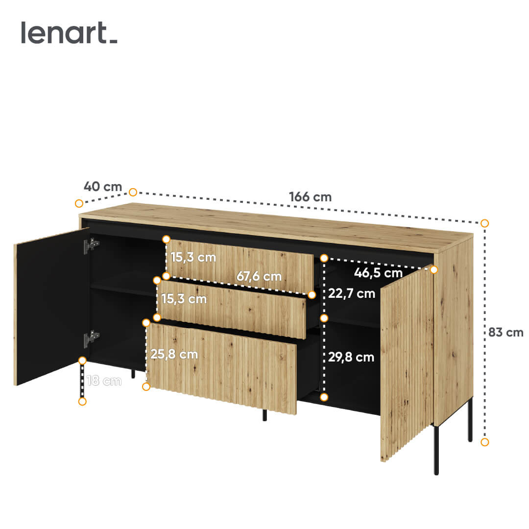 TREND TR-01 - Komoda 2D3S Z Oświetleniem Dąb Artisan/Czarny