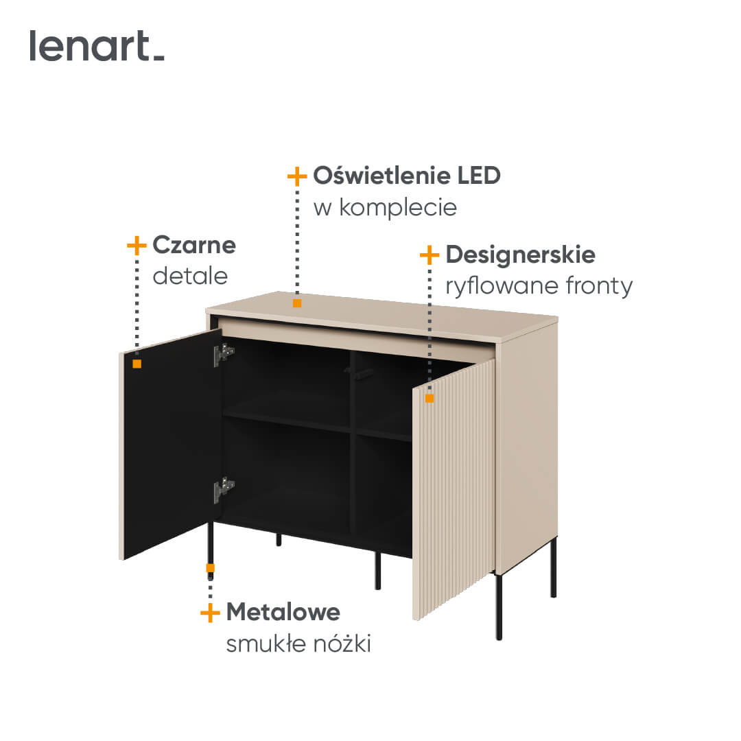 TREND TR-02 - Komoda 2-drzwiowa Z Oświetleniem Beż Piaskowy/Czarny
