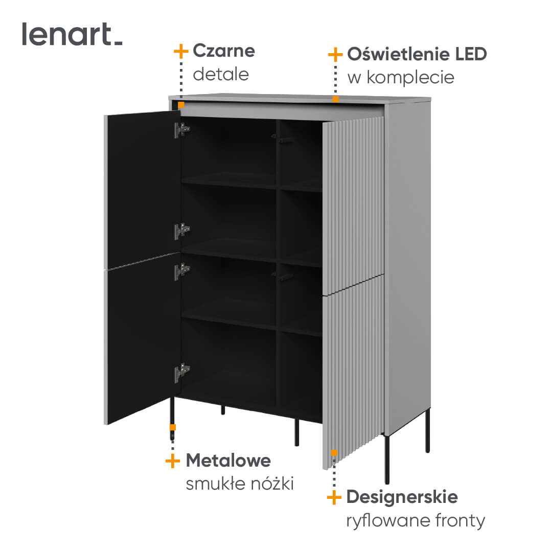 TREND TR-03 - Szafka 4-drzwiowa Z Oświetleniem Szara/Czarna