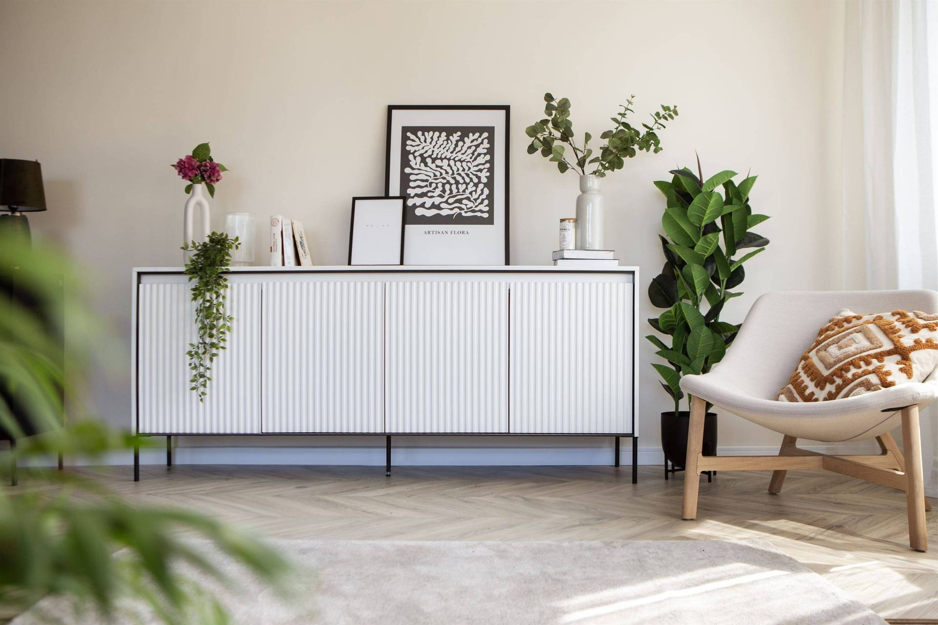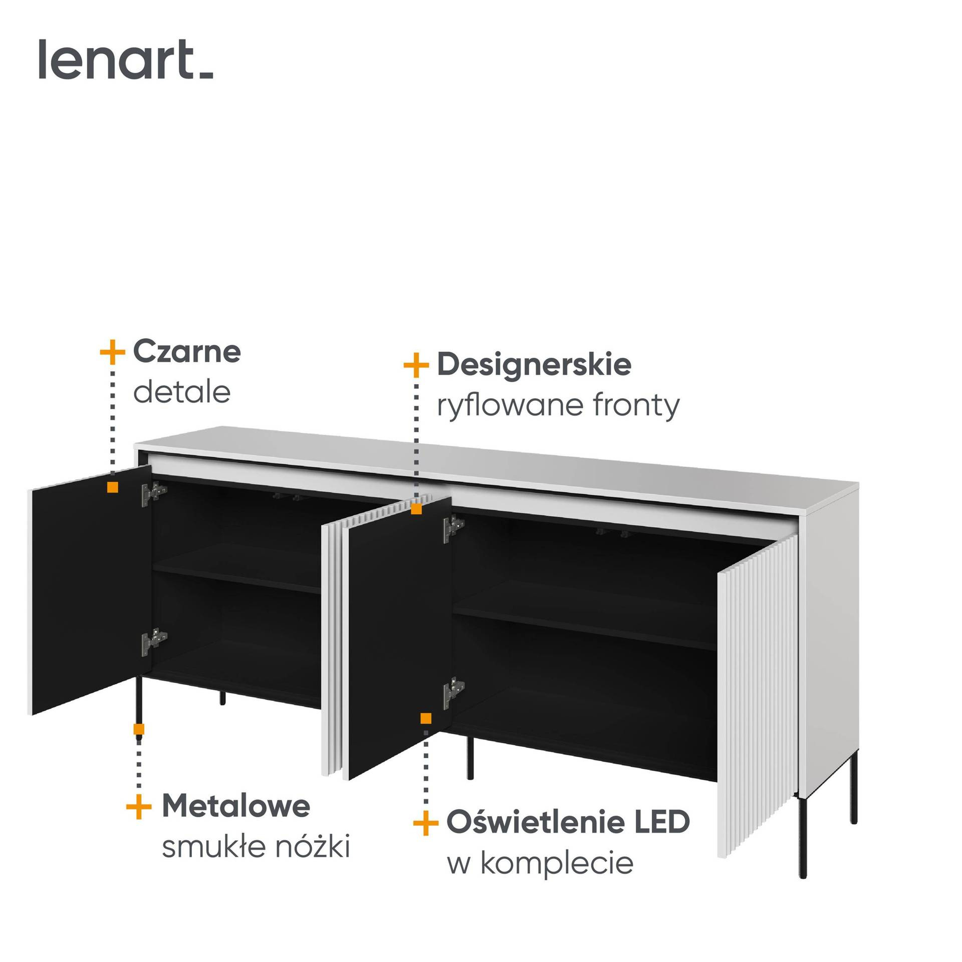TREND TR-04 - Komoda 4-drzwiowa Z Oświetleniem Biała/Czarna