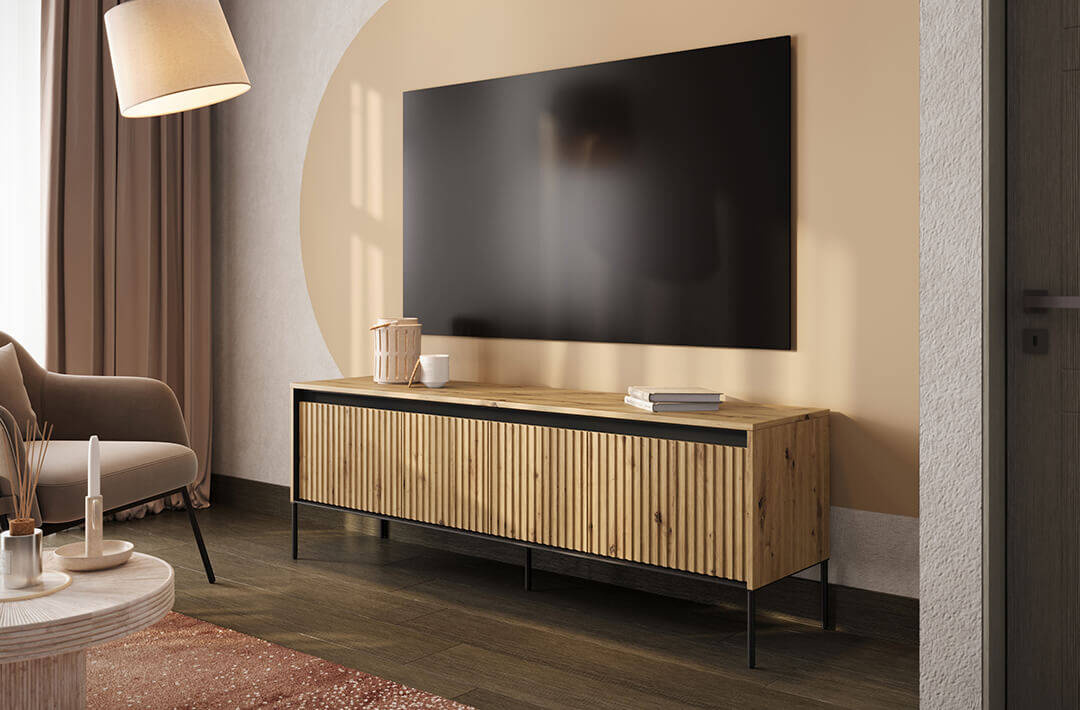 TREND TR-05 - Szafka RTV 4-drzwiowa Z Oświetleniem Dąb Artisan