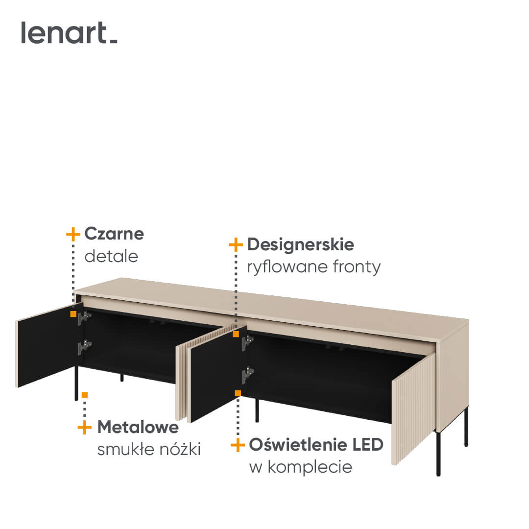 TREND TR-06 - Szafka RTV 4-drzwiowa Z Oświetleniem Beż Piaskowy/Czarny