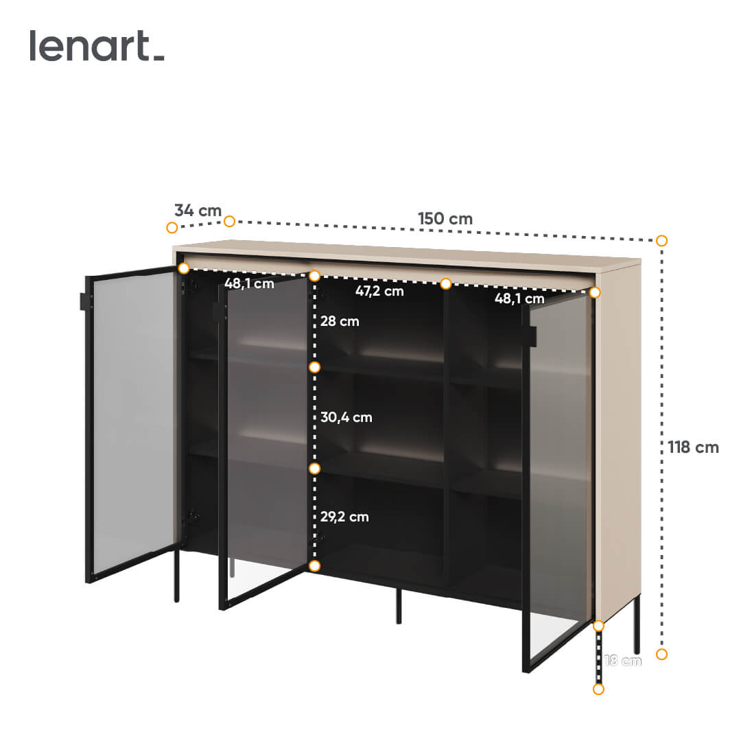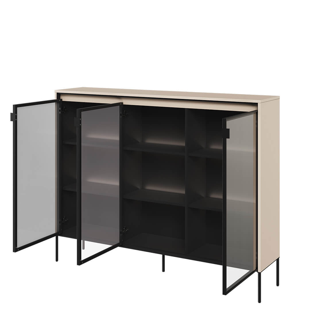 TREND TR-08 - Komoda 3-drzwiowa Z Oświetleniem Beż Piaskowy/Czarny