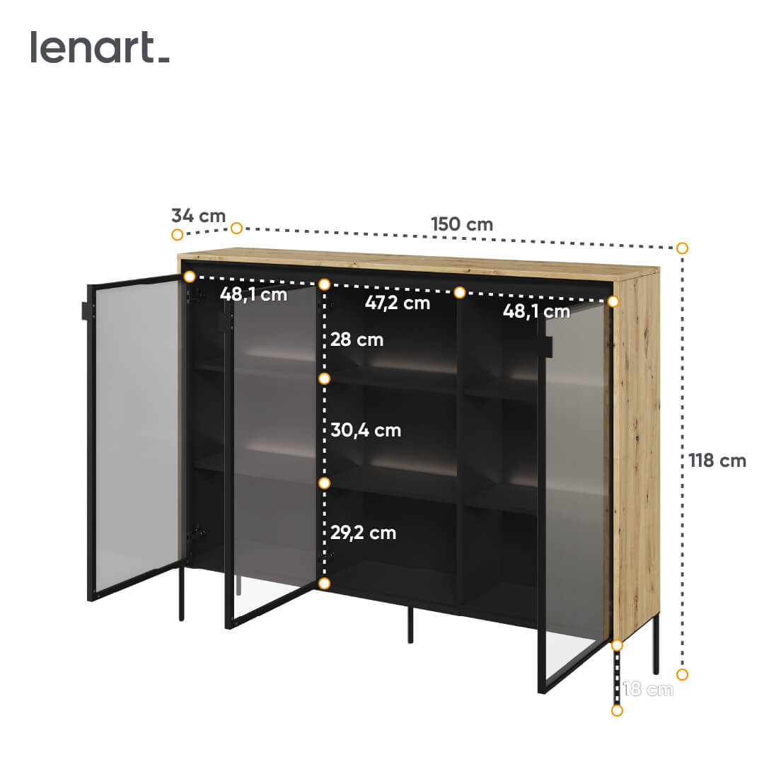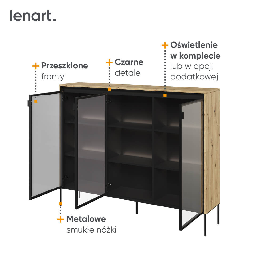 TREND TR-08 - Komoda 3-drzwiowa Z Oświetleniem Dąb Artisan