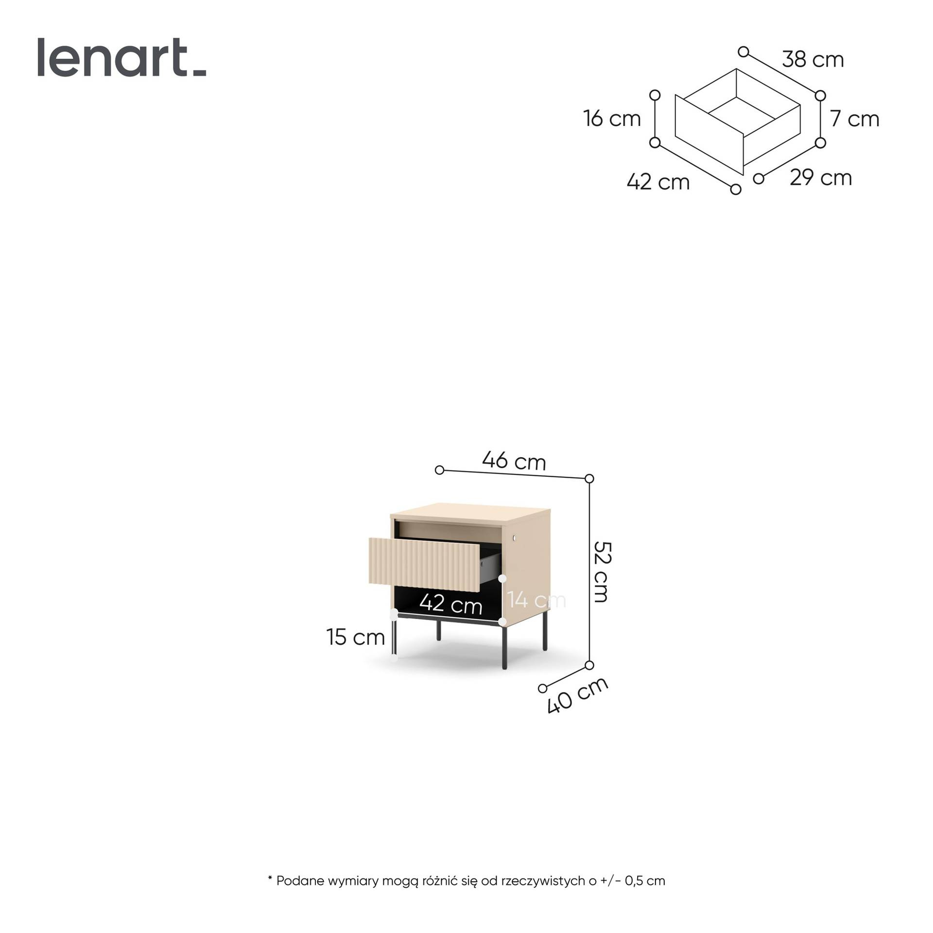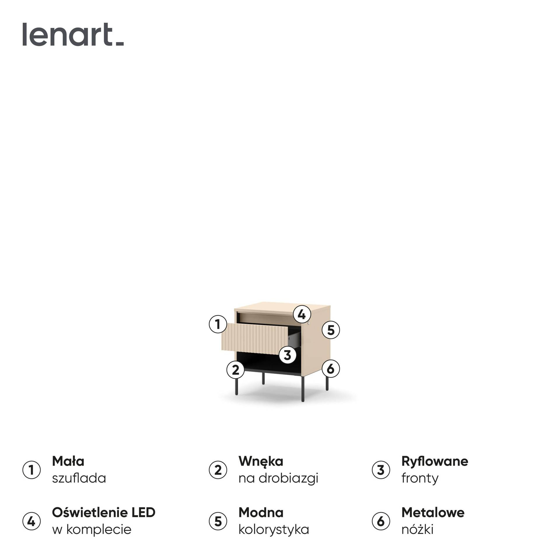 TREND TS-10 - Szafka Nocna 1 Szuflada z LED Beż Piaskowy Czarny Mat