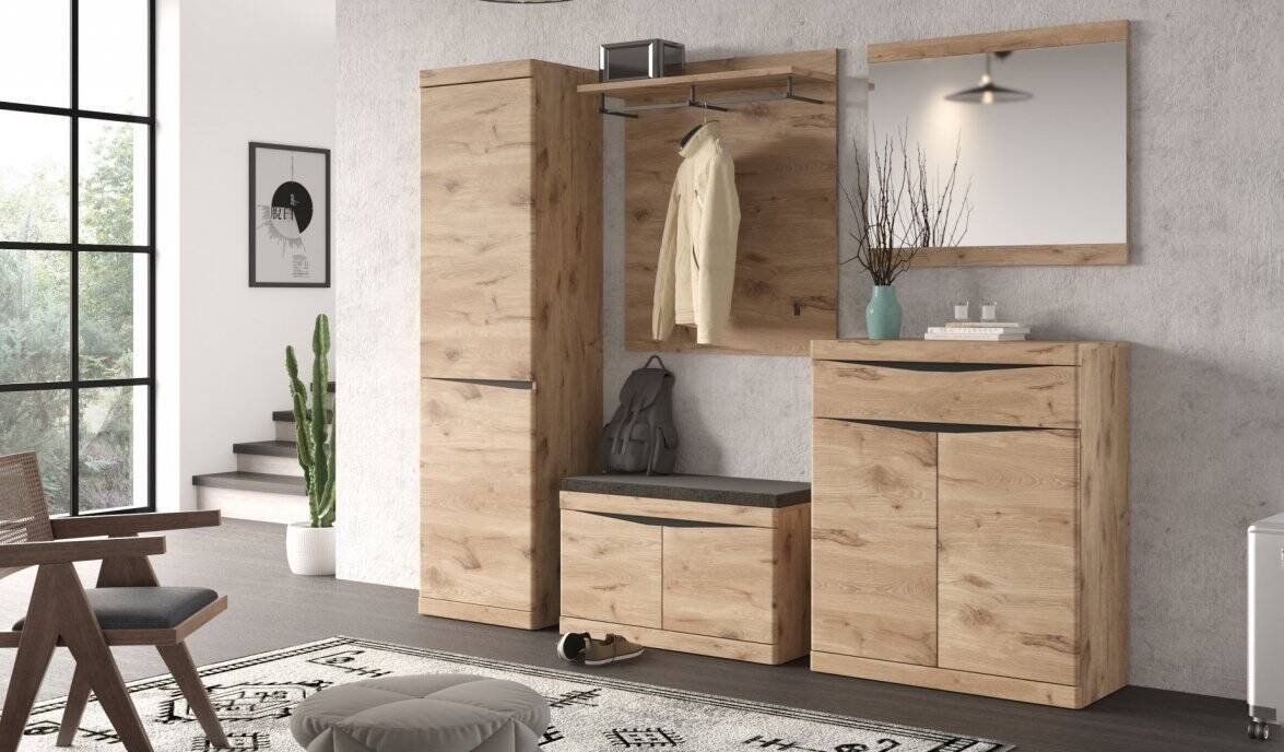 Wewnątrz komody znajduje się pojemna szuflada na mechanizmie kulkowym oraz praktycznie rozmieszczone półki za drzwiami z cichym domykiem. Takie rozwiązanie jest idealne dla osób ceniących sobie porządek i łatwy dostęp do przechowywanych przedmiotów. Doskonała organizacja miejsca do przechowywania ułatwia utrzymanie porządku nawet w największym pośpiechu.