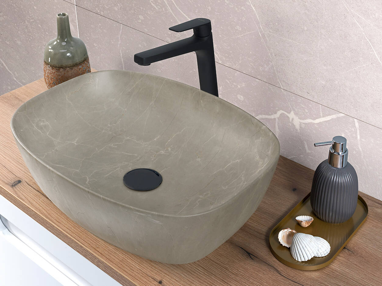 - Umywalka nablatowa o szerokości 50,5 cm owalna wykonana z wysokiej jakości ceramiki w kolorze Matt Surface (beżowo-kremowa). Powierzchnia matowa.