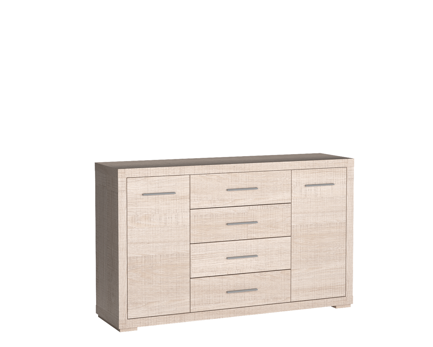 Odkryj elegancję z komodą VEGAS-3 od Jarstol! Posiada 4 przestronne szuflady i 2 szafki z półkami, oferując maksymalne wykorzystanie przestrzeni. Wykonana z laminowanej płyty, z metalowymi uchwytami, idealnie nadaje się do salonu, biura czy gabinetu.