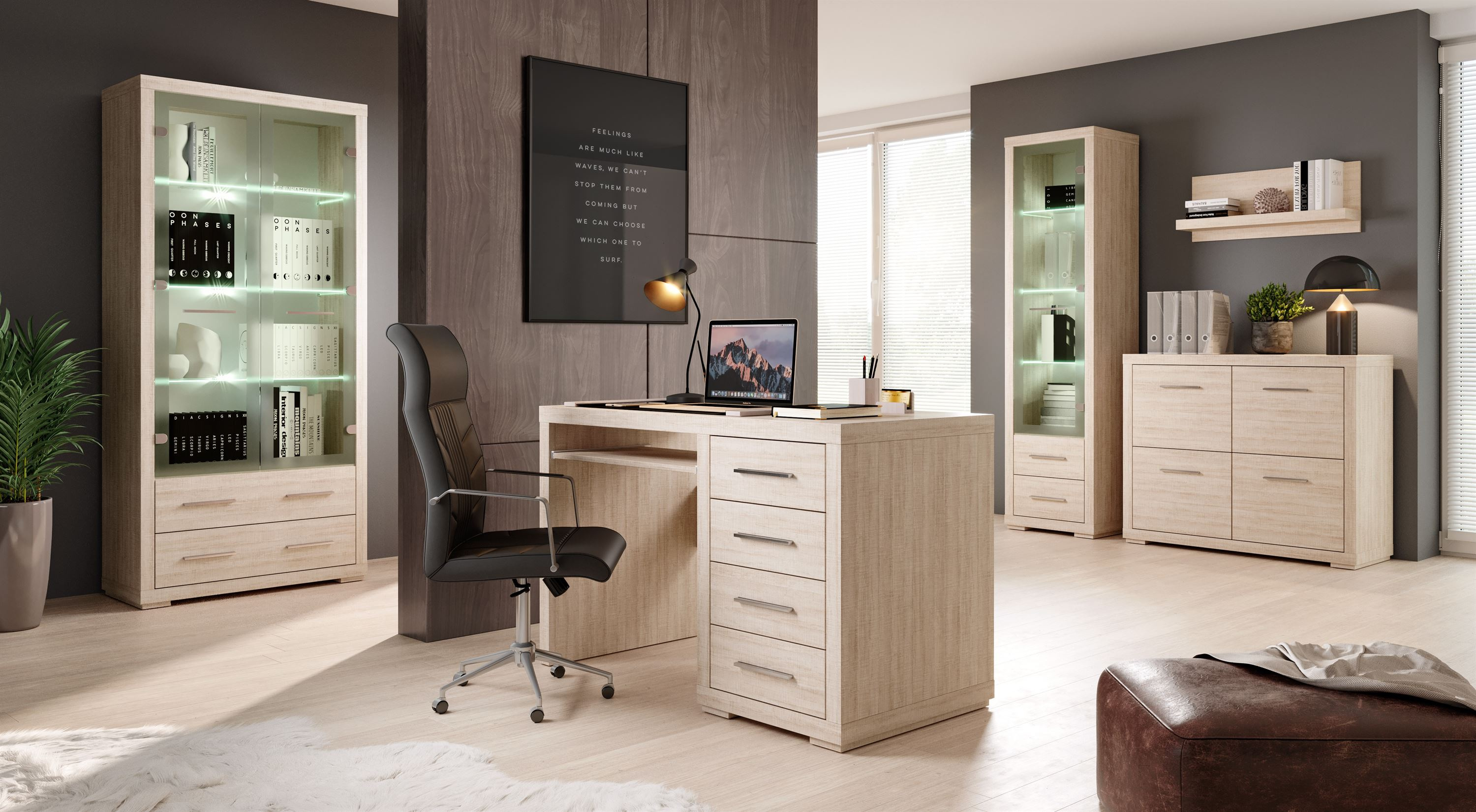 Metalowe uchwyty, w kontrastującym srebrnym kolorze, nadają szafie charakteru i podkreślają jej solidność. To detale, które nie tylko wzmacniają estetykę mebla, ale również zapewniają trwałość na lata. Dzięki nim, otwieranie szafy staje się przyjemnością, a każdy detal został zaprojektowany tak, aby stworzyć harmonijną całość.
