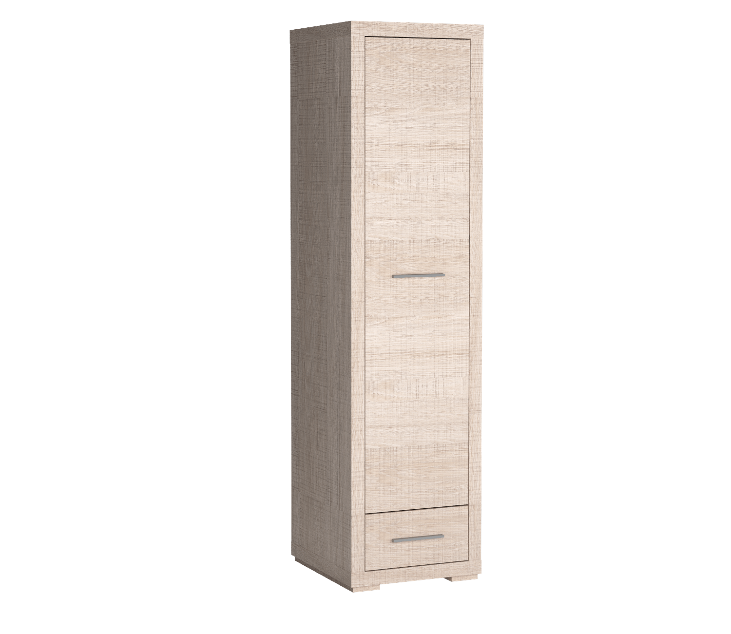 Szafa jednodrzwiowa VEGAS-36 w kolorze Santana Jasna to idealne rozwiązanie do każdego wnętrza. Wyposażona w drążek na ubrania i praktyczną szufladę na akcesoria, łączy nowoczesny design z funkcjonalnością. Metalowe uchwyty dodają jej elegancji.