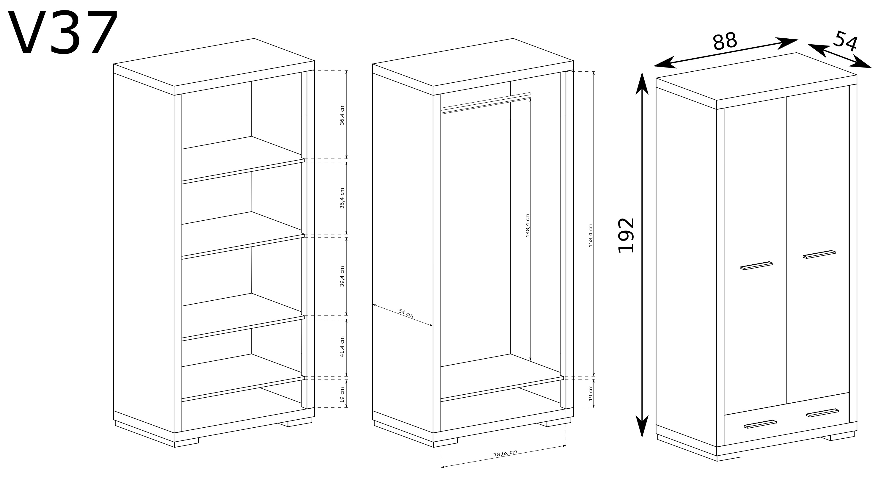 Dostępność w różnych kolorach sprawia, że szafa VEGAS-37 łatwo wkomponuje się w różnorodne aranżacje wnętrz. Jej stylowy wygląd oraz funkcjonalność czynią ją idealnym rozwiązaniem dla osób ceniących sobie zarówno estetykę, jak i praktyczność. Nie czekaj dłużej – pozwól, aby ta wyjątkowa szafa wzbogaciła Twoje wnętrze, dodając mu nie tylko stylu, ale i porządku!