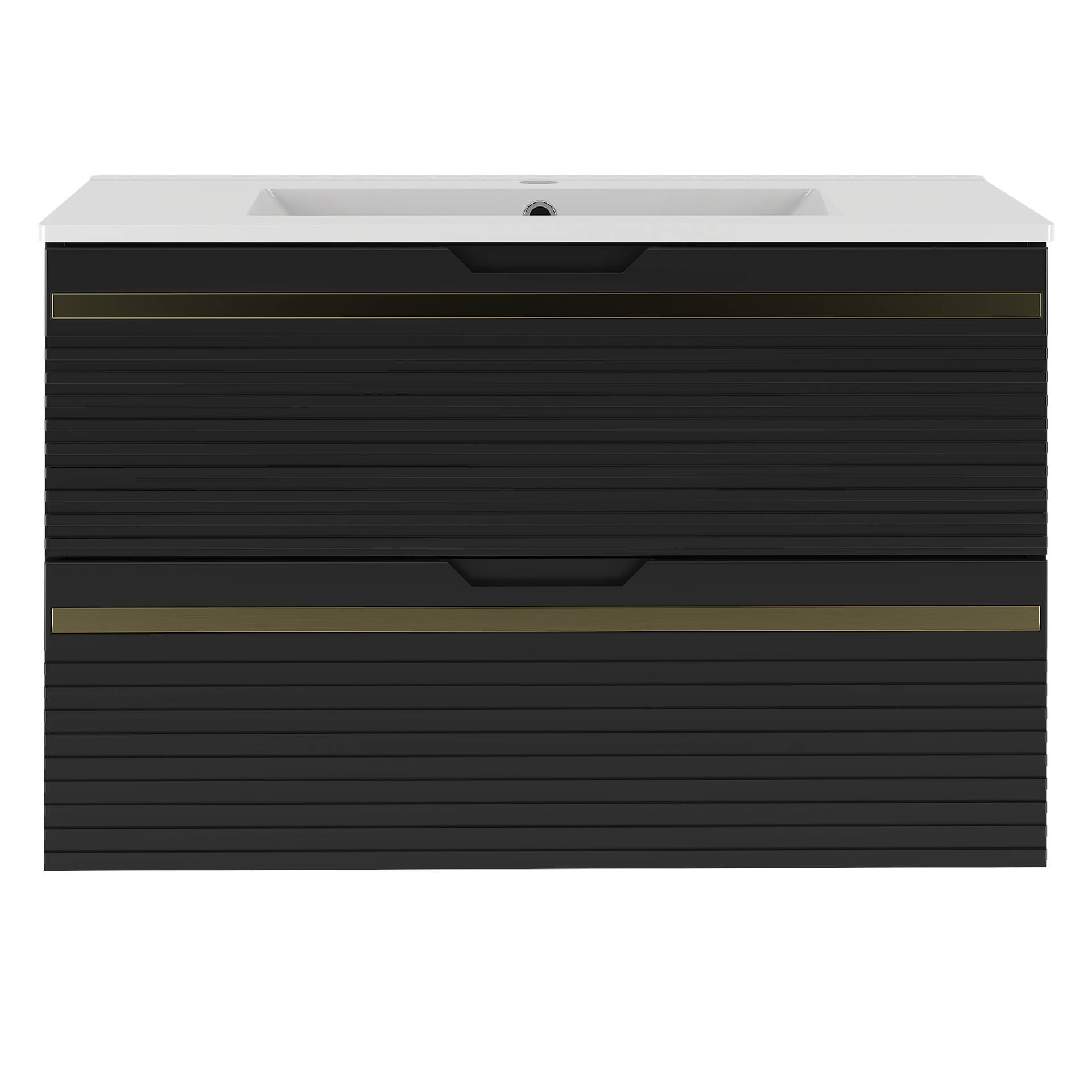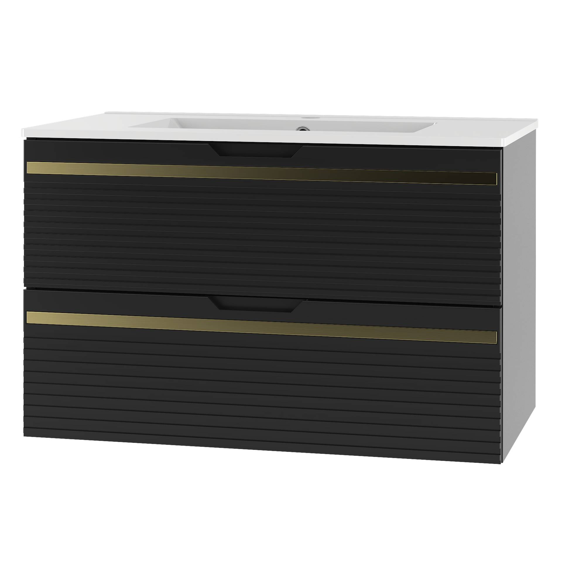 VESPER-01 - Szafka z Umywalką 2S 80cm Czarny Mat Zestaw-3