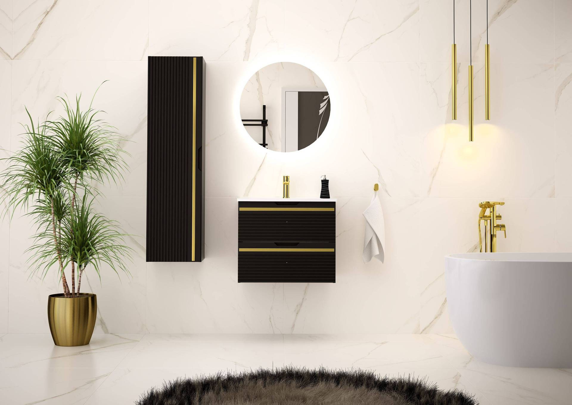 Stwórz wyjątkową przestrzeń kąpielową z elegancką szafką z umywalką VESPER-02. Ten nowoczesny utwór sztuki użytkowej, wykończony w stylowym czarnym macie, doskonale wkomponuje się w łazienki o różnych aranżacjach, dodając im nutę luksusu i klasy. Jej minimalistyczny design to idealne połączenie estetyki i funkcjonalności, jakie oferuje marka Megstyl.