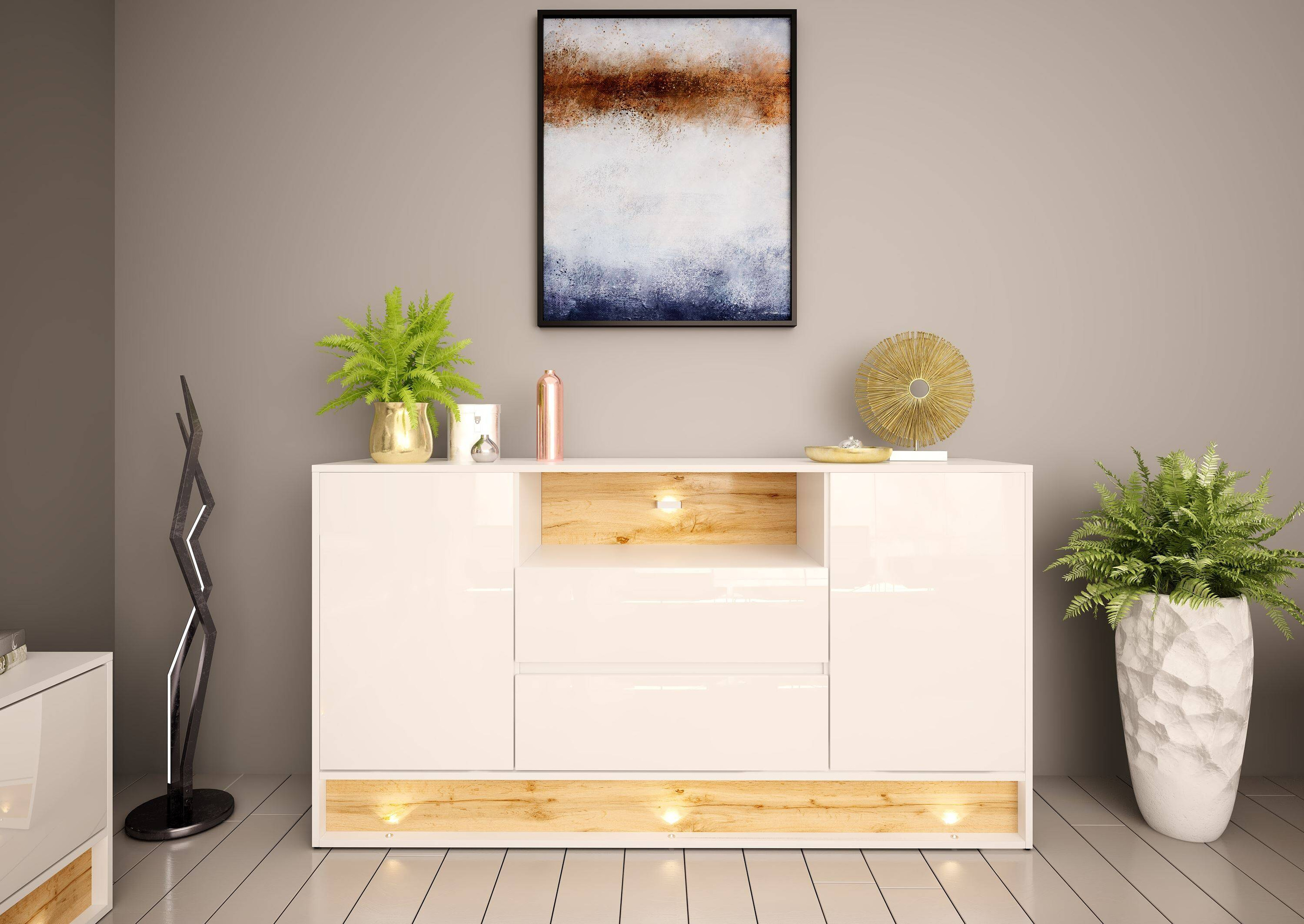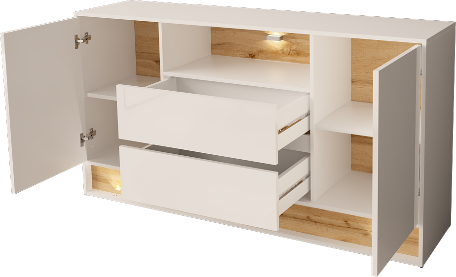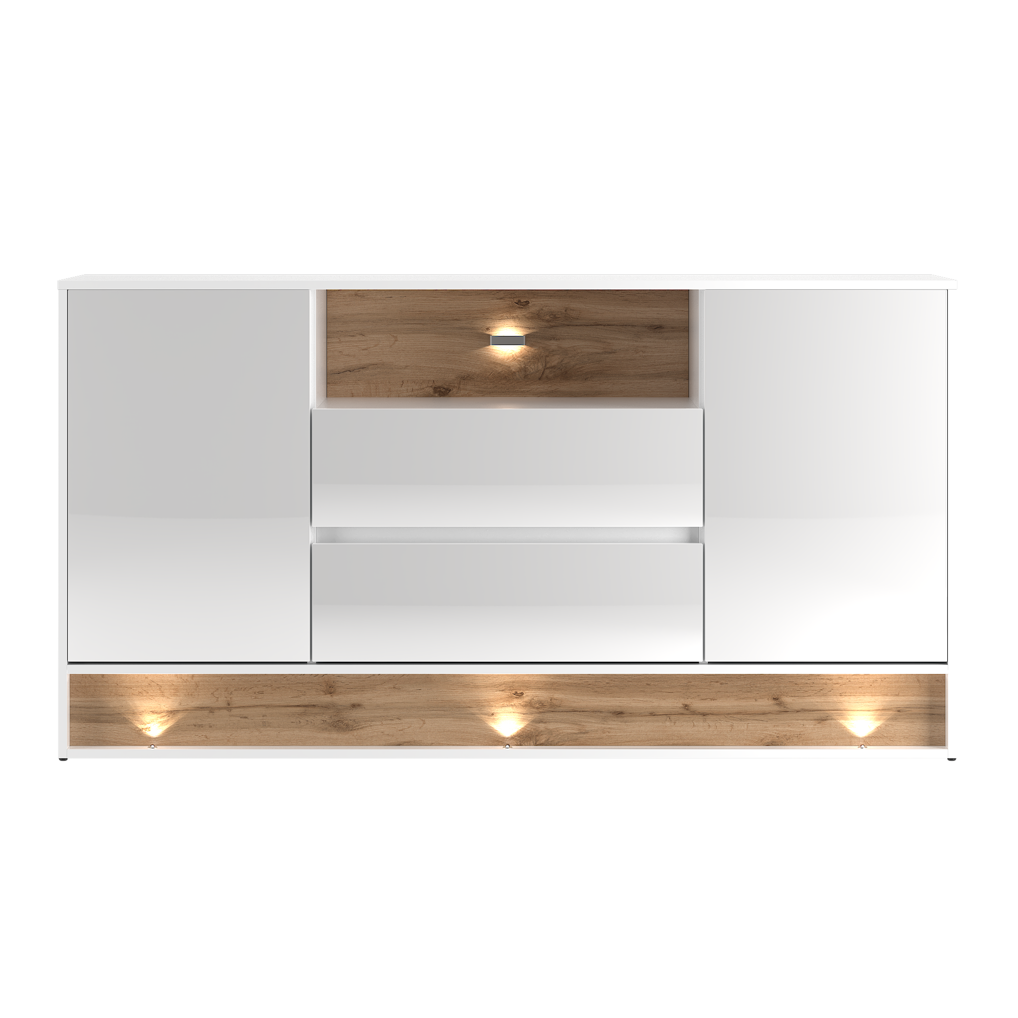 VISION-02 - Komoda 2D2S z Oświetleniem LED Biały Mat Dąb Wotan Mat Biały Połysk