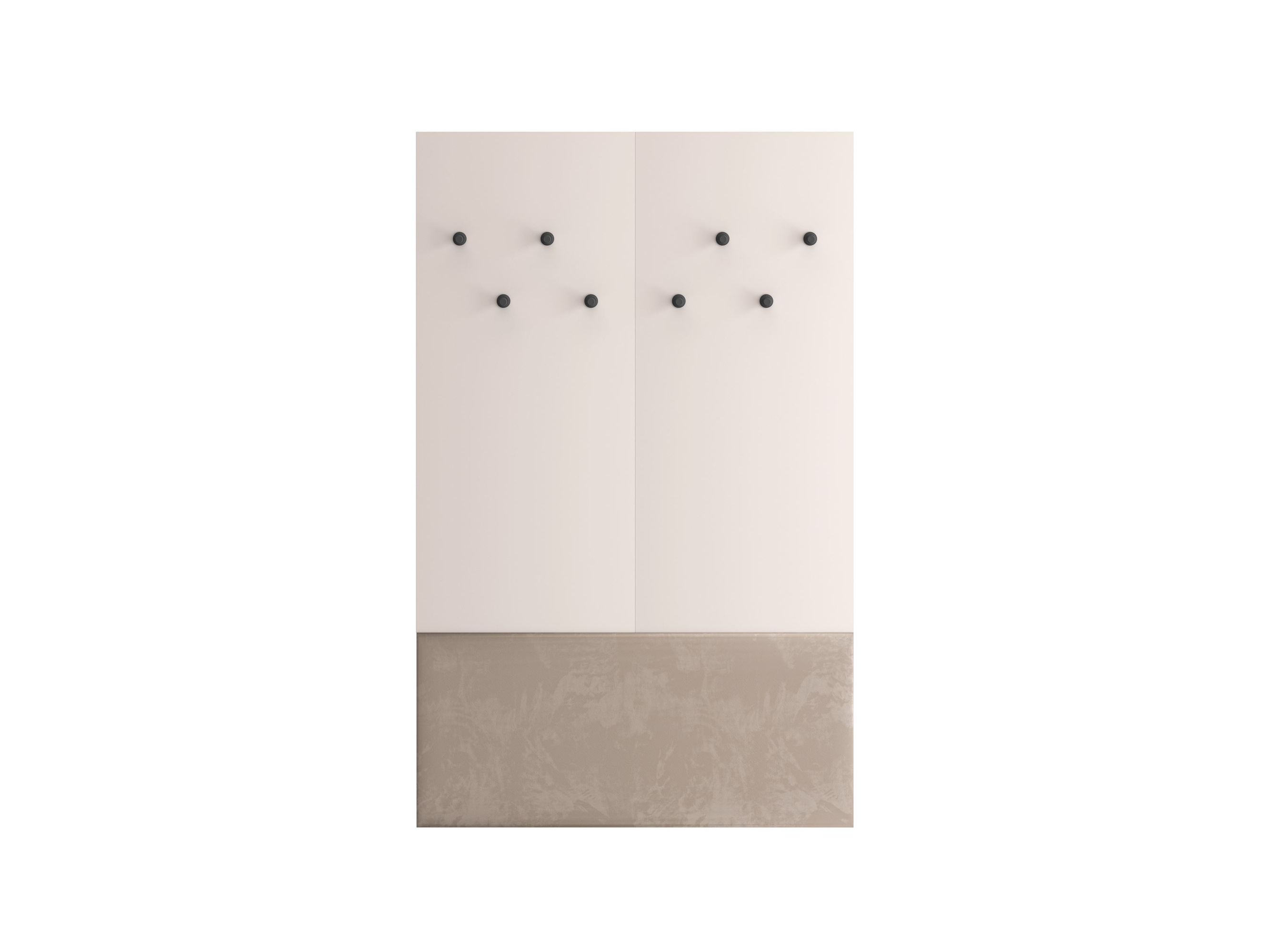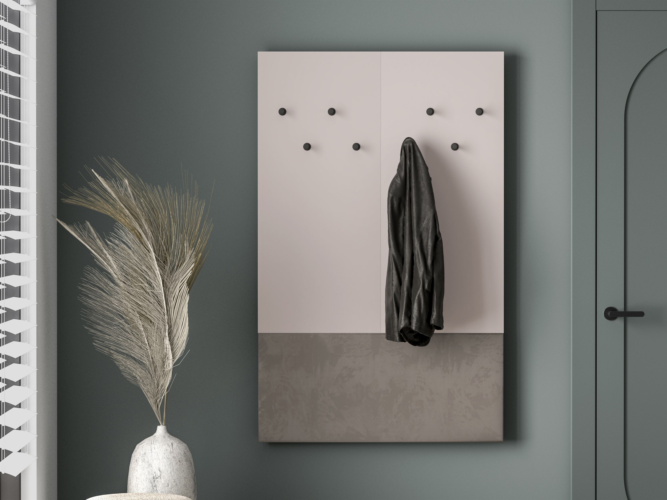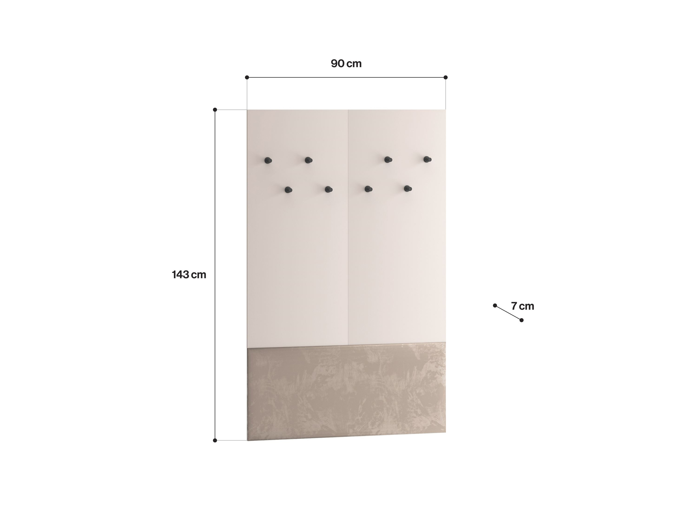Wieszak Panel Szeroki VOCO 07 łączy elegancję i funkcjonalność. Wykonany z wysokiej jakości płyty laminowanej w odcieniu cashmere, z aksamitem w kolorze beżowym, doskonale wpisuje się w nowoczesne wnętrza. Idealny do przedpokoju, doda charakteru.