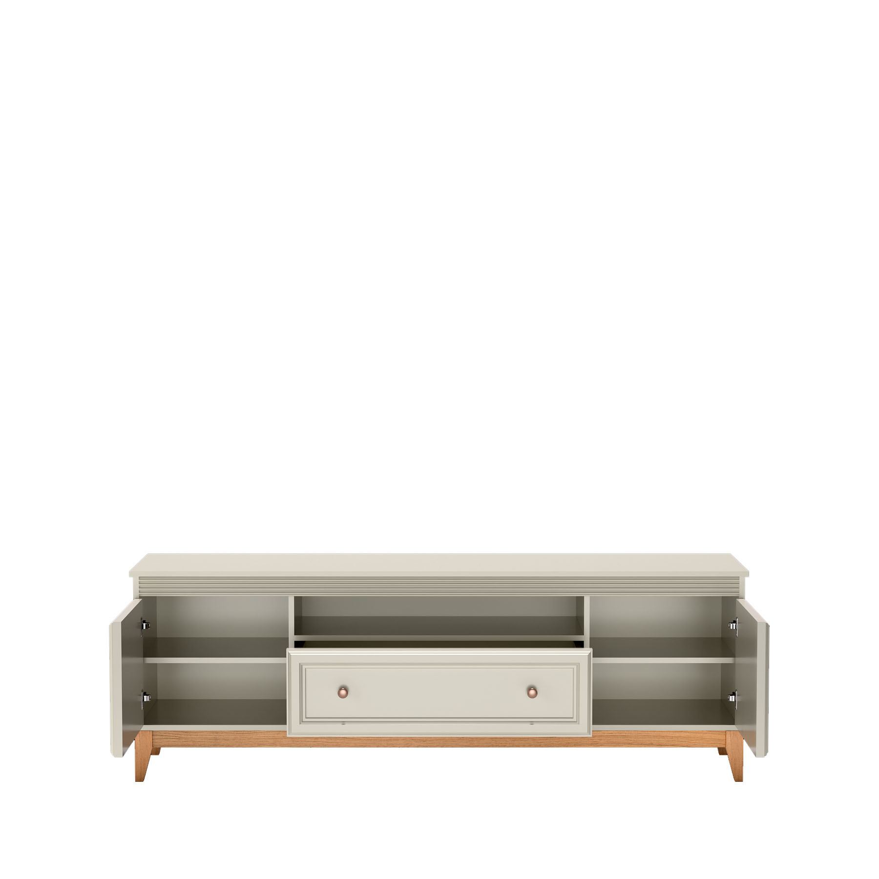 Odkryj elegancję i funkcjonalność komody RTV WINDSOR-9 marki Jarstol. W atrakcyjnym kolorze kaszmiru, z drewnianymi nóżkami i miedzianymi uchwytami, doskonale wpasuje się w nowoczesne oraz klasyczne wnętrza. Idealna do przechowywania i wyeksponowania.