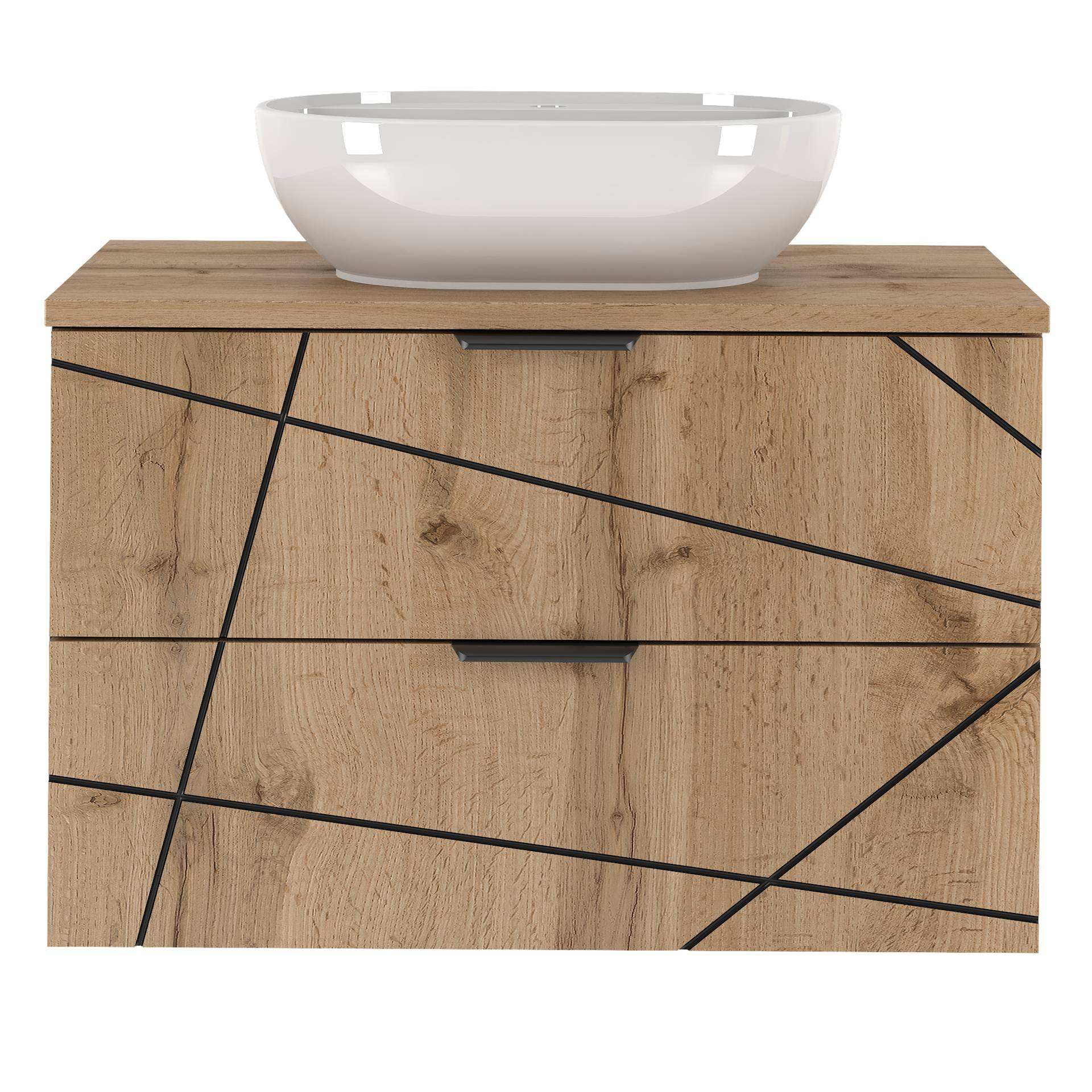 WOOD-01 - Szafka z Umywalką i Blatem 2S 80cm Dąb Wotan Zestaw-2