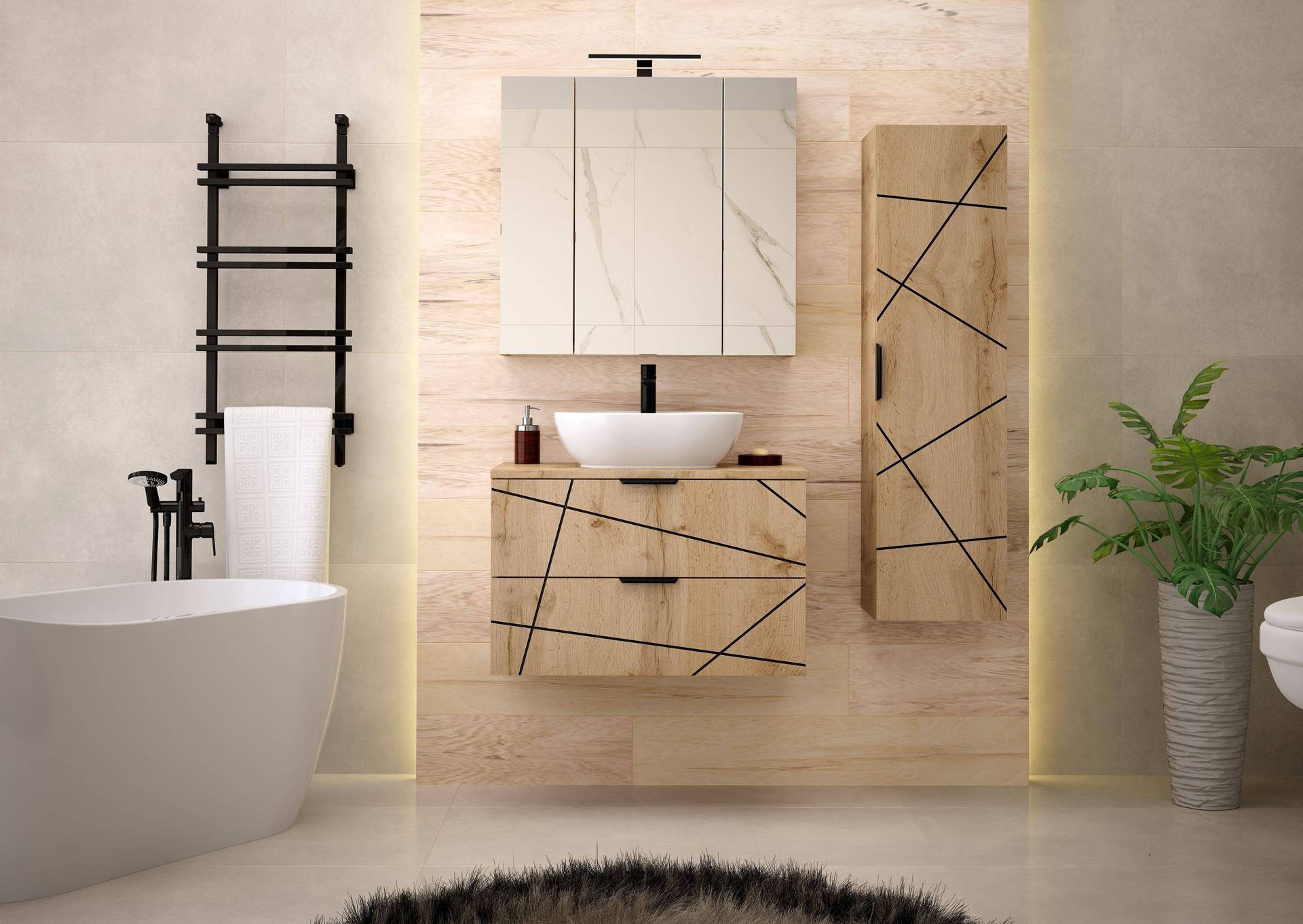 Zapraszamy do odkrycia niezwykłego zestawu WOOD-01, w którym styl spotyka funkcjonalność. Ta elegancka szafka z umywalką i blatem stanie się sercem każdej nowocześnie urządzonej łazienki. Wysublimowany kolor dąb wotan nadaje jej niepowtarzalnego charakteru, dodając ciepła i elegancji. Naturalne odcienie drewna doskonale wpisują się w najnowsze trendy wnętrzarskie, oferując ponadczasowy wygląd, który zachwyci zarówno domowników, jak i gości.