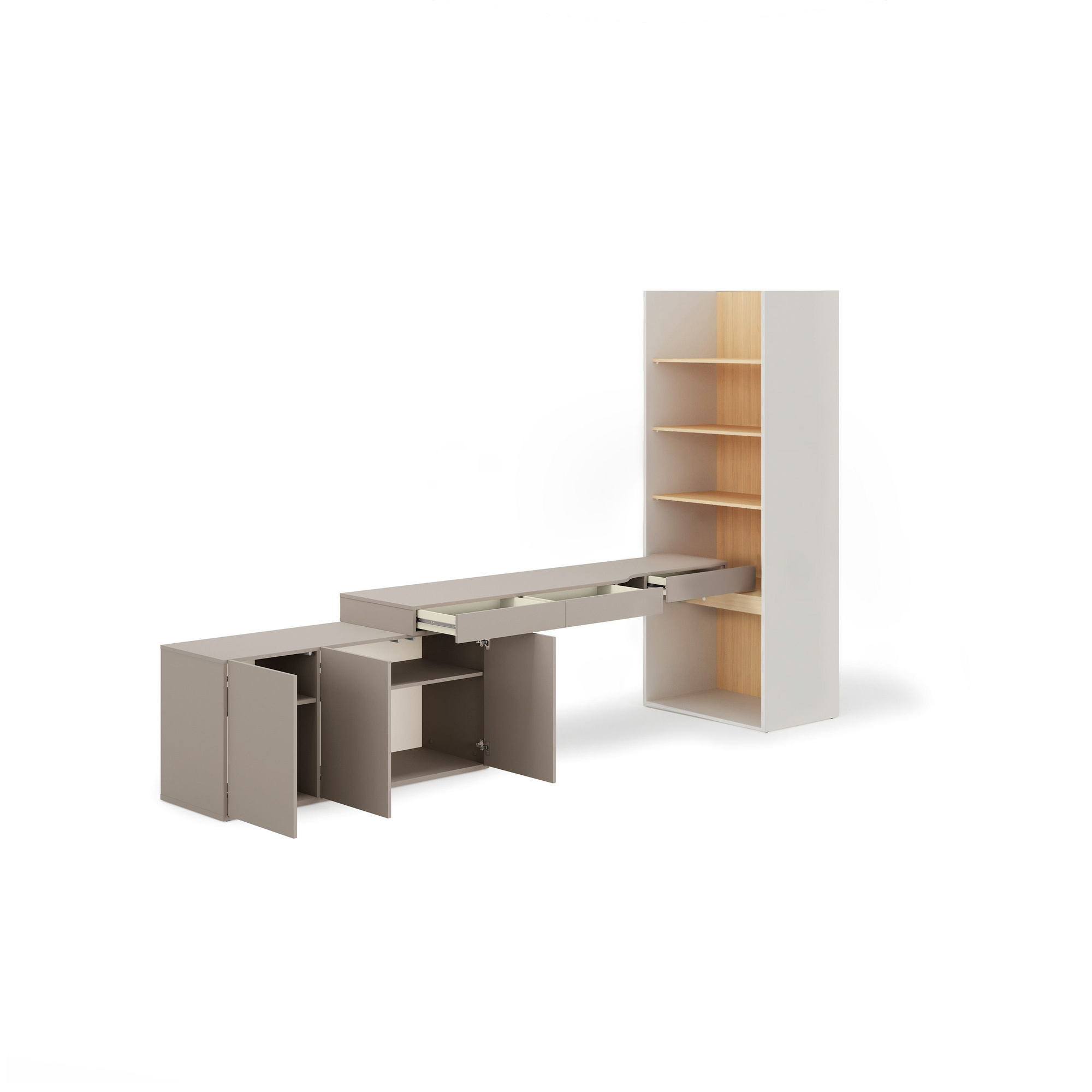 WOOW SET-WOS8LVB - Zestaw Komoda i Biurko Lewe/Regał Szeroki Szampański/Dąb Vincenza Bielona/Clay Grey