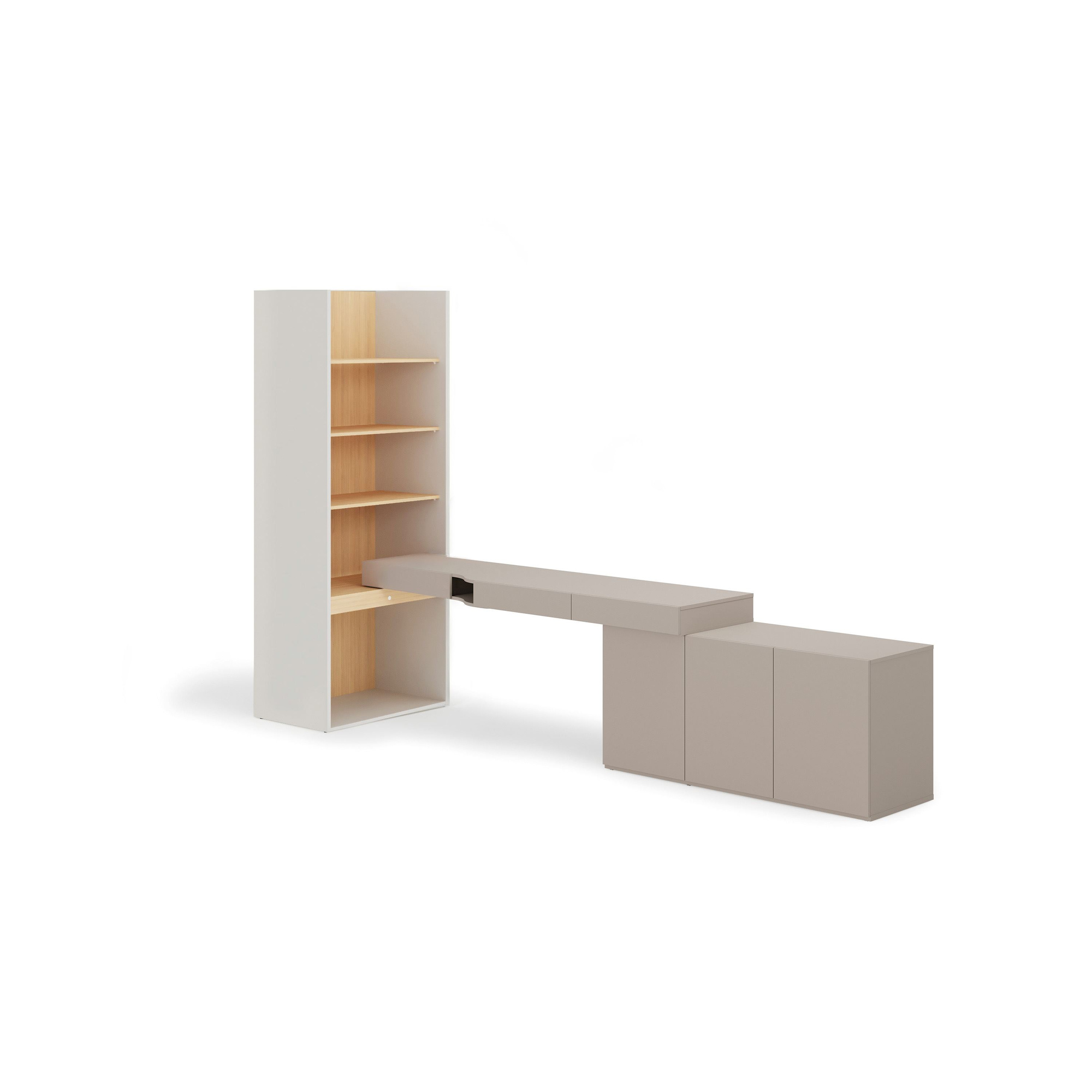 WOOW SET-WOS8PVB - Zestaw Komoda i Biurko Prawe/Regał Szeroki Szampański/Dąb Vincenza Bielona/Clay Grey