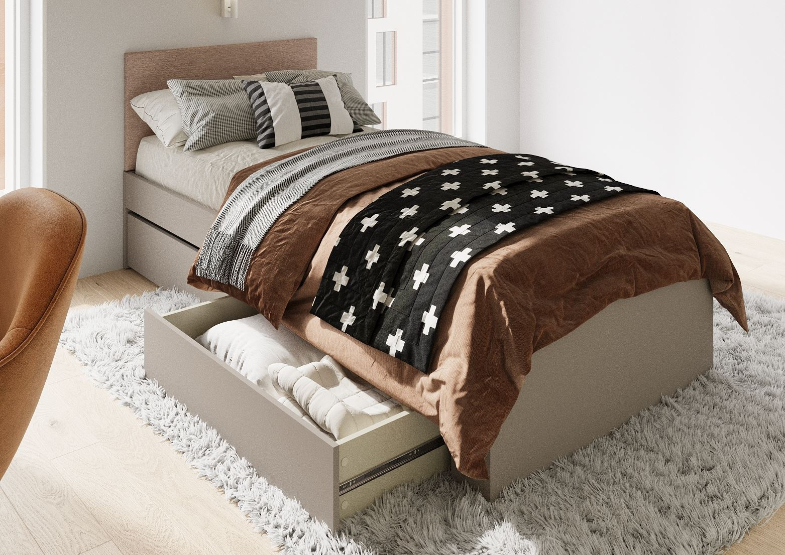 Łóżko rozkładane WOOW WO-12 w eleganckim odcieniu Clay Grey to idealne rozwiązanie do każdego wnętrza. Wykonane z płyty laminowanej, z dwoma pojemnymi szufladami, łączy styl z funkcjonalnością. Doskonałe do małych przestrzeni!