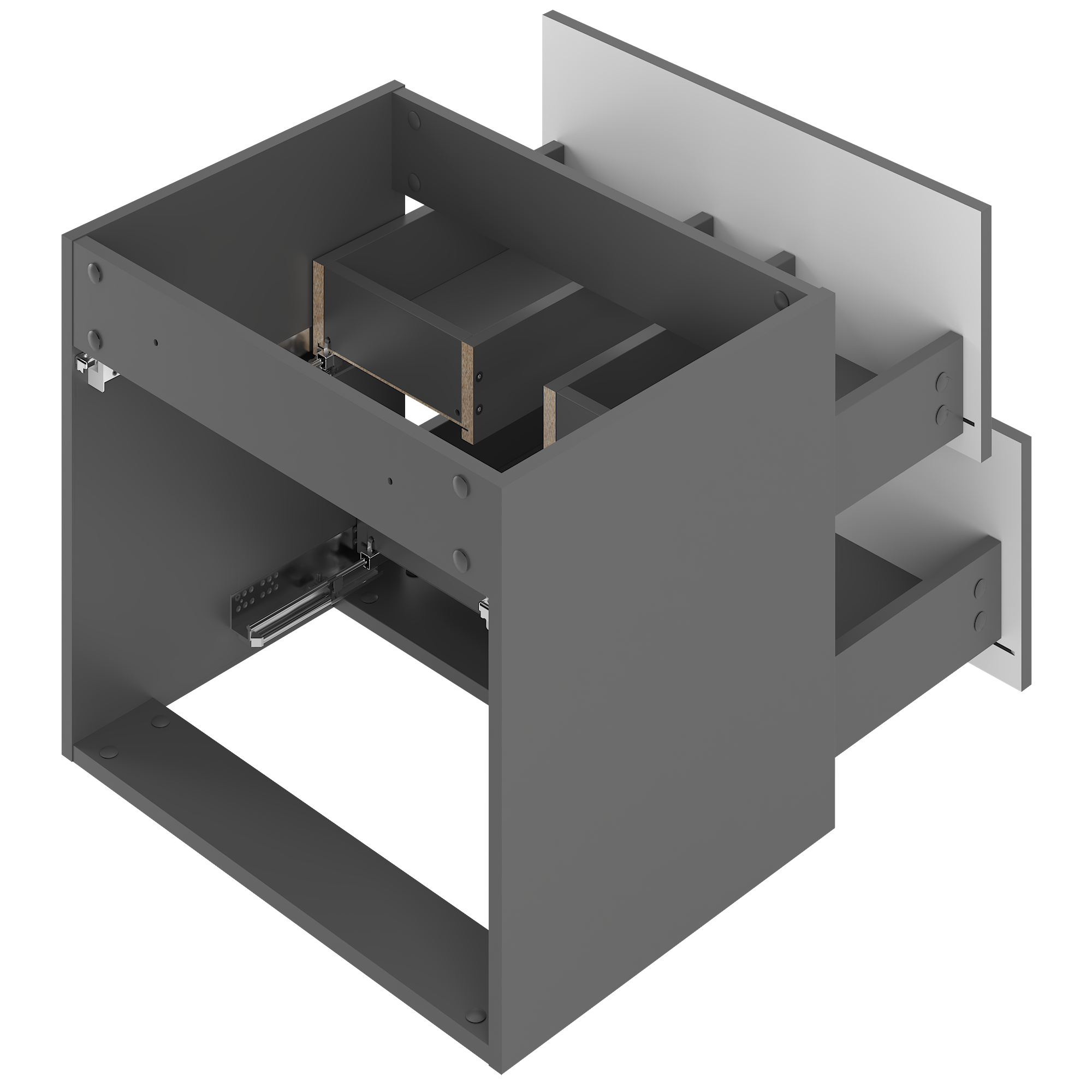 Funkcjonalność to jej drugie imię. Szafka wyposażona jest w cichy domyk, co gwarantuje płynne i bezgłośne zamykanie szuflad, zapewniając komfort użytkowania na co dzień. Laminowana płyta zastosowana w konstrukcji korpusu jest nie tylko estetyczna, ale także wytrzymała, odporna na wilgoć i łatwa w utrzymaniu czystości.